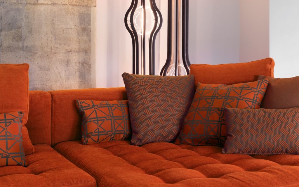 The modular units can be combined to form linear compositions, corner units or with lateral extensions allowing it to adapt to a wide range of different-sized spaces and environments. Compared to Doze, the differences in the Flat version lie exclusively in the more compact size of the compositions, achieved by reducing the thickness of the armrests from 25 to 17 cm. The unusual feature of the Doze system is the extraordinary degree of comfort normally found in the bed, thanks to the slatted base, the luxurious padding with springs and the special layer of breathable fabric.