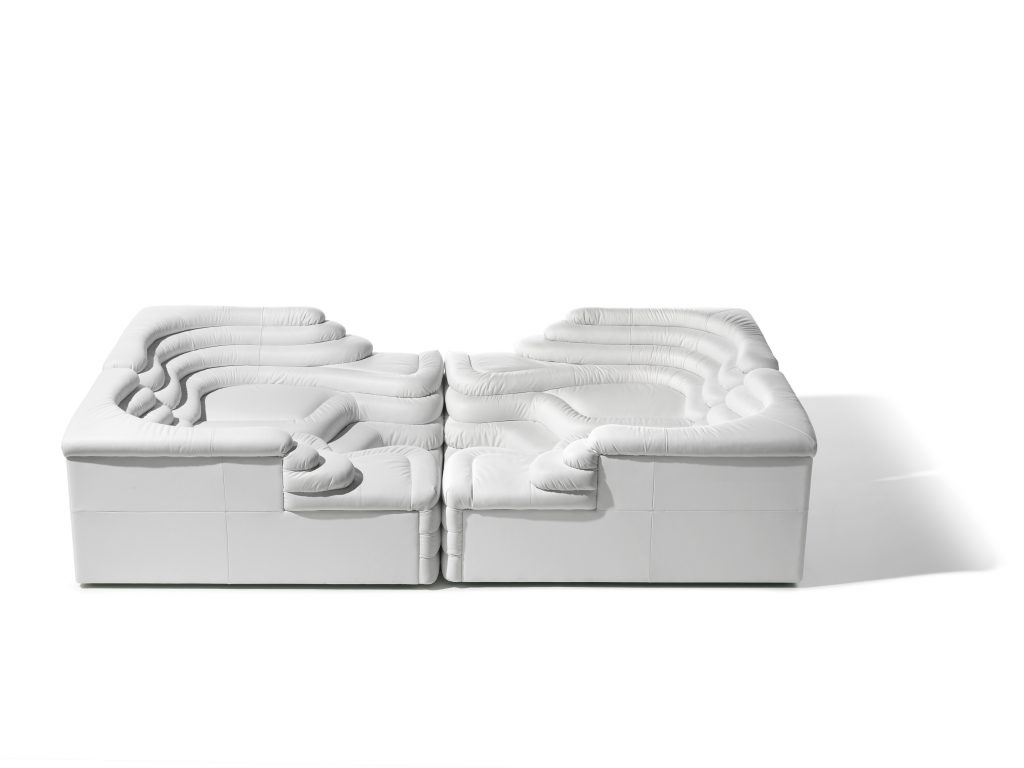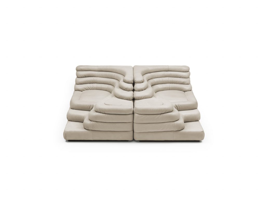 Two sophisticated, strong design sofa elements form the perfect basis for implementing your own interior design and furnishing concepts. The single element is like a terraced hill with widths and depths that vary in tapering steps. The elements 'left' and 'right' constitute a welcoming two-seater sofa, a seating pyramid or a small range of upholstered hills. By adding extra elements, it is possible to create entire seating groups to match your ideas and requirements.