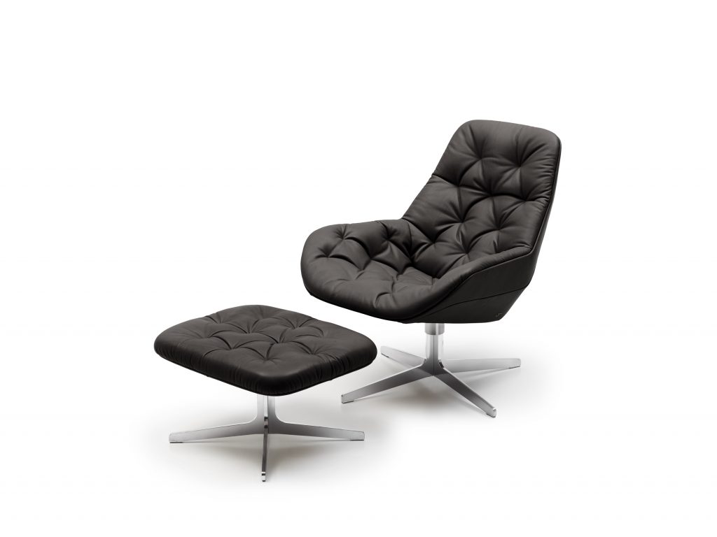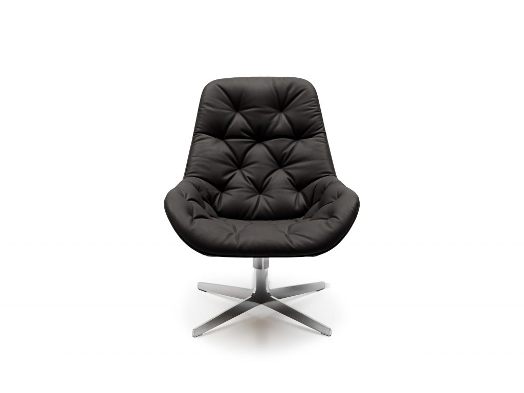Minimalist and streamlined design for maximum seating comfort. The chair's surrounding flat edges offer unaccustomed clarity and directness. Embraces the body like the seat in a racing car and offers the ultimate in relaxation - with a focus on the essentials. Unique accents can be provided with contrast decorative stitching or a painted outer shell.