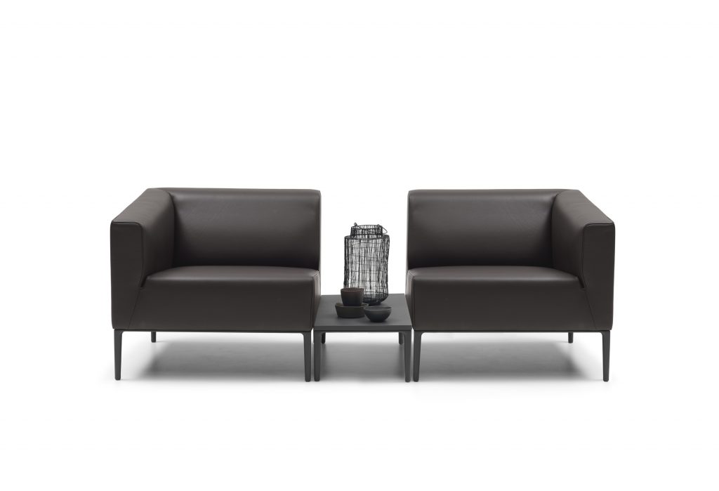 A linear outer contour and round interior - the elegant piping of the contour focuses the eye. Forward sloping armrests give the product a focus. Groups of furniture assembled as required give the room a considerably lighter feel. Significant, well-proportioned aluminium frame. An unobtrusive all-rounder for the commercial and residential market.