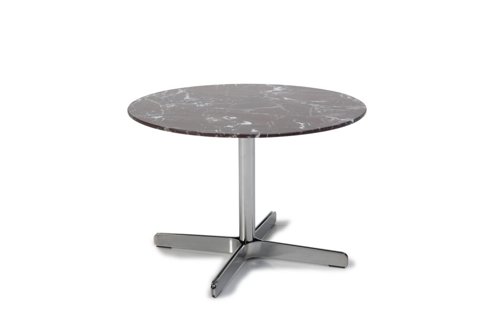 The side table DS-343 is admirable from all sides. The round tabletop is available in a variety of materials: in wood, in DS-TELA mixtures of stone and metal materials, or in high-quality marble. The table base, designed with stylish edging, is a highlight and available in a wide range of materials, from matte to chrome-plated.
