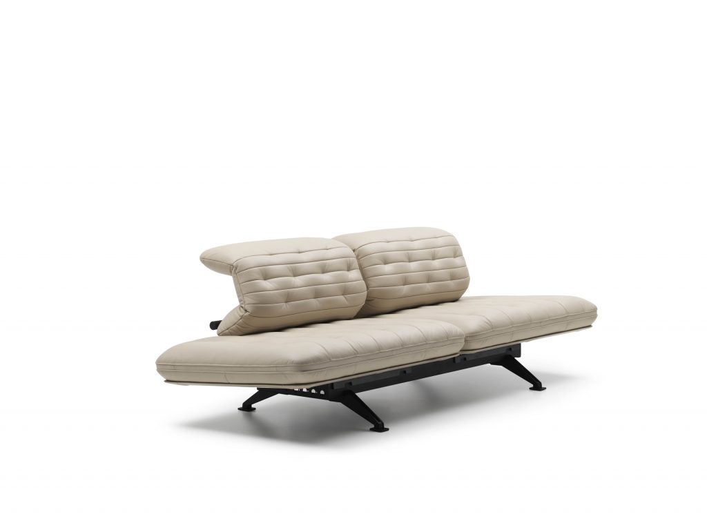 The new DS-490 model is a true quick change artist: All it takes is two hand movements for the futuristic looking sofa to turn into a double-relax-lounger. Despite the many functions and the carefully thought out mechanism, DS-490 convinces with its lean silhouette and inviting comfort. This masculine appearing upholstery furniture acts as a sculptural presence in the room and serves as a cockpit for stylish multimedia enjoyment or as a wellness island for pure relaxation.