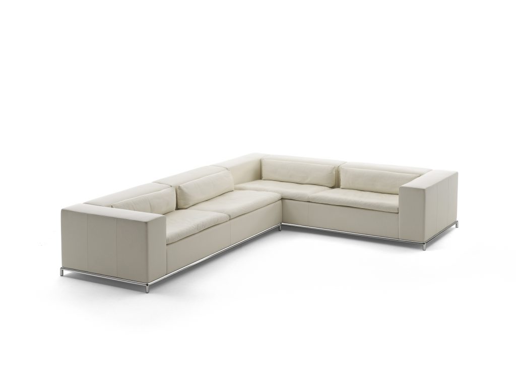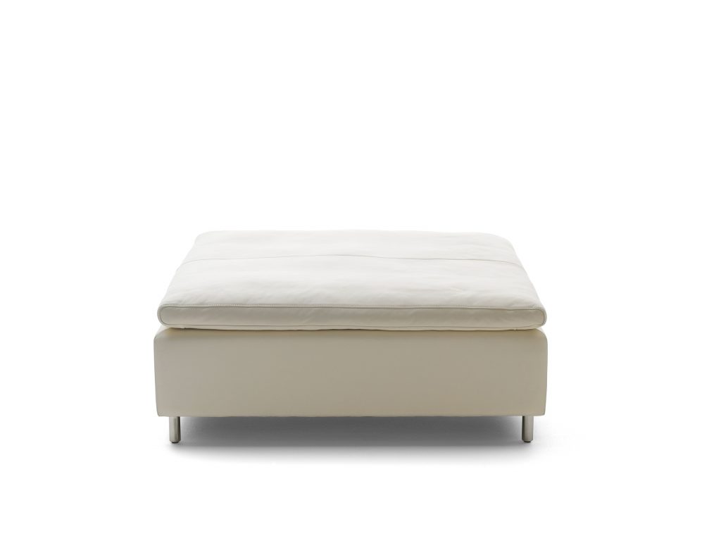 Powerful interpretation of the lounge concept. A cubic model with a reduced form language, a timeless utility and decorative object. The high seating comfort and numerous uses are attractive characteristics. Clean lines with an interesting, concealed function: The low backrests can be folded upwards if required to provide ultimate seating comfort.