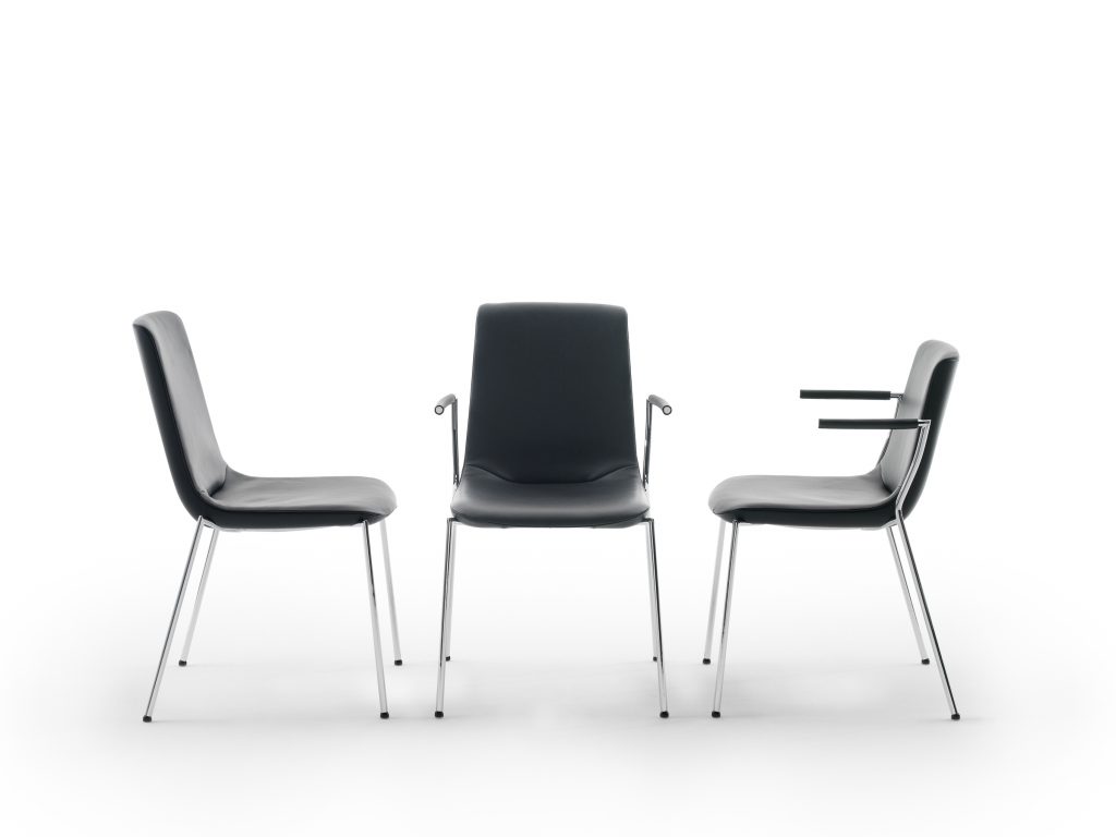 A unique symbiosis between the simplicity of form and ultimate functionality. Meets the highest standards in seating comfort thanks to seat shells of ergonomic perfection. Chrome-plated steel tubing for the perfect shape. Makes sitting an act of sensuality. Technology, material, ergonomics and tactility in perfect harmony. Uncompromising quality in every respect.