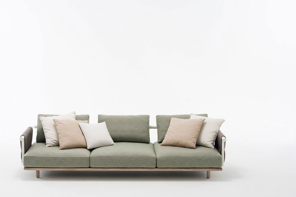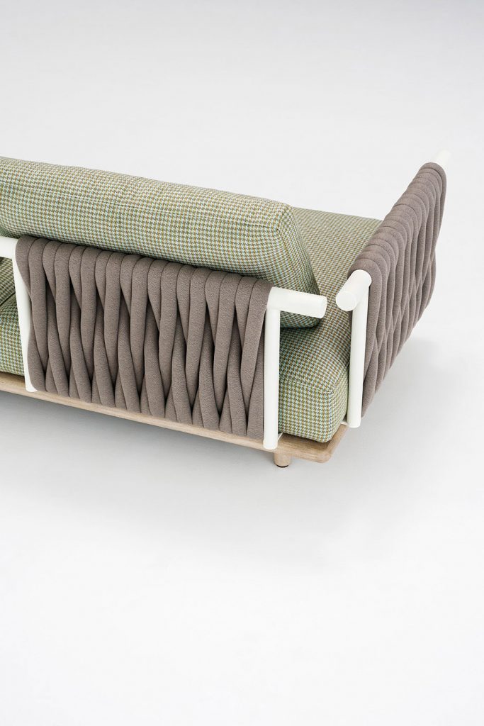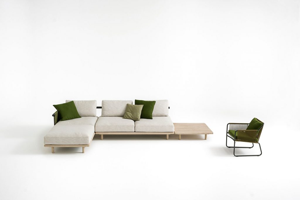 Generous in form and especially in the depth and thickness of the cushions, EDEN is characterized by the unusual combination of materials and by its extreme modularity.