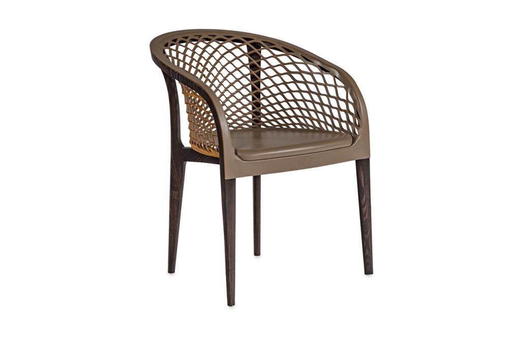 Armchair on an Ashwood structured with ash wood structure that has been heat- treated and oak dyed. Seat and cut leather backrest in a tan cowhide - Cuoio: Col. #29 Tortora.