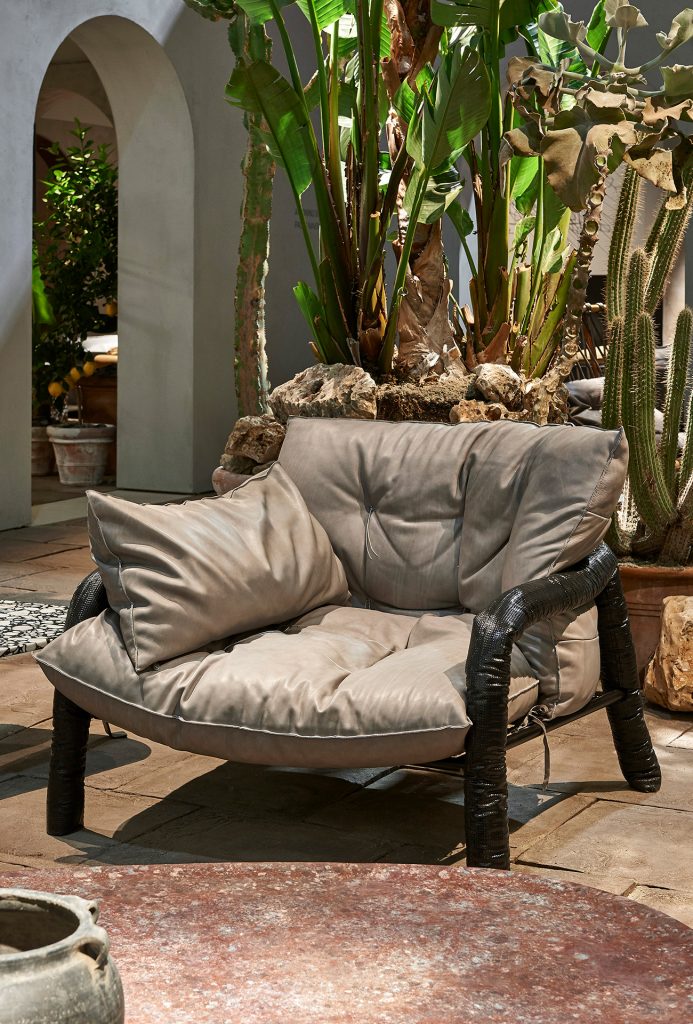 Starting from a very simple frame, Eva Paster and Michael Geldmacher of Neuland created an extremely innovative project that received an Interior Innovation Award in 2012. The key to the success of this best-selling armchair is its versatility, which allows it to evolve almost continuously, not to mention the high-quality tailored workmanship of the upholstery. The structure is available in polyurethane, with cushions; padded and covered in hide, with the characteristic reinforced ribbing reminiscent of the backbone of an elephant; padded and upholstered in fabric, with hand-stitched seams. In addition to wood or metal legs, the chair is available with a slide-frame base, rocking base, swivel base or castors. The chair can be complemented with a removable Lips cushion, in a round or shaped version, to create the most varied colour combinations.