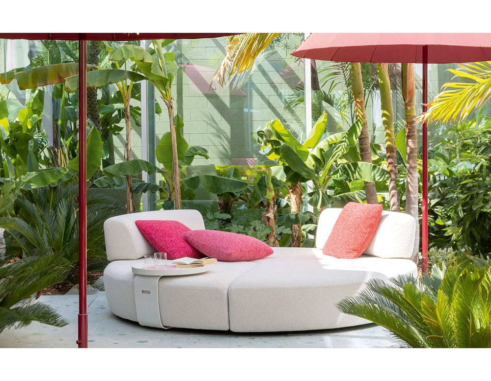 Backrests upholstery: removable and available in the fabrics Rope T, Brio, Thea, Rope T mélange, Wara, Whim, Moss, Roseto, Felce or Jabel.