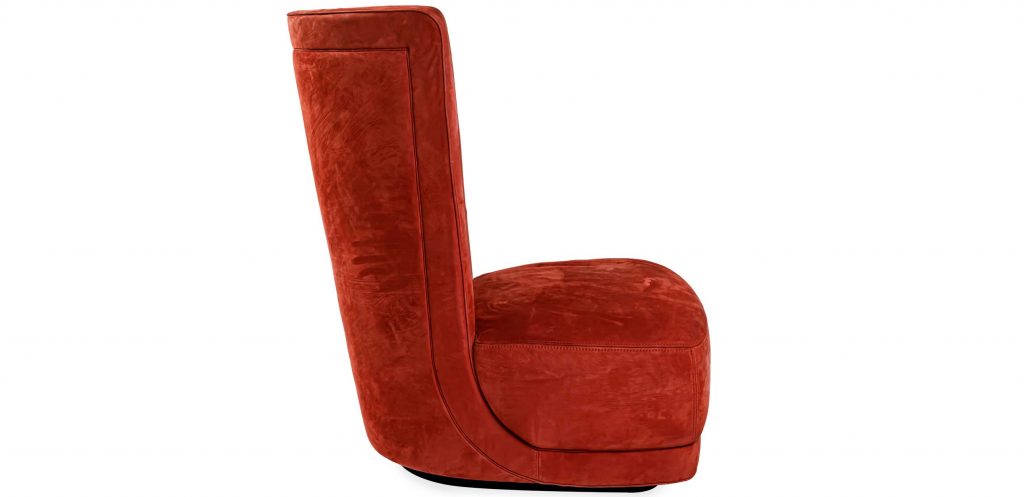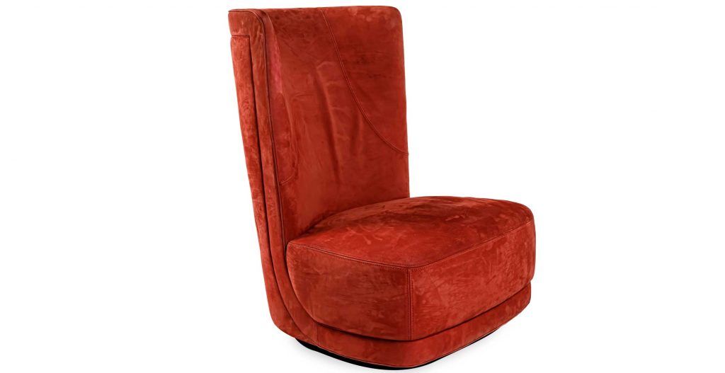 Swivel armchair covered in a bright red leather - Kashmir: rubies. The armchair features a swivel mechanism.