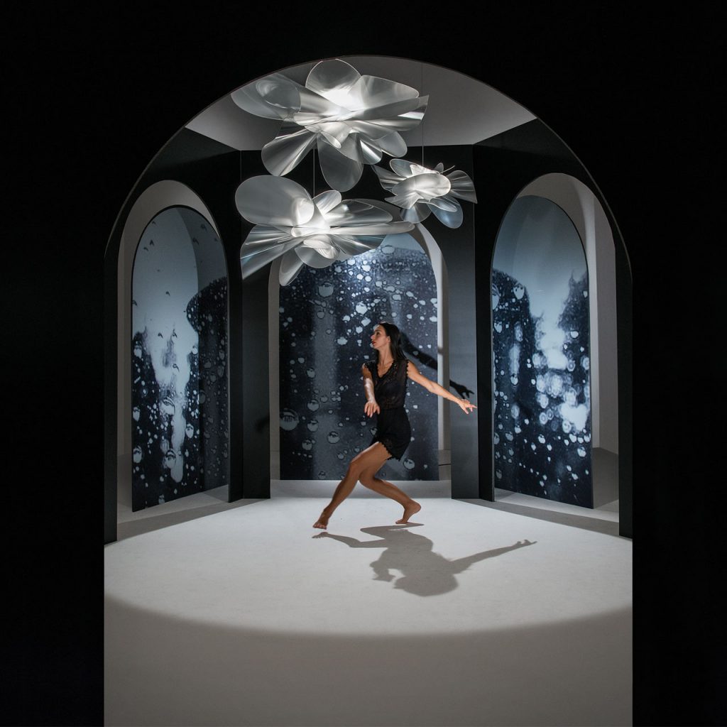 The Étoile takes its name and inspiration from the dance world. The suspensions impalpable, graceful shapes take form thanks to our Lentiflex®, available in two sizes fit for private interiors or more dramatic spaces, and a versatile ceiling/applique version. The lamps biggest innovation is the new LED MagneticSystem®: the patented circuits can be removed with a simple click, even when the lamp has already been installed, and therefore easily substituted. The crystal drop enriches the lamps surface and gives balance to the asymmetrical wings, just as the designer desired.