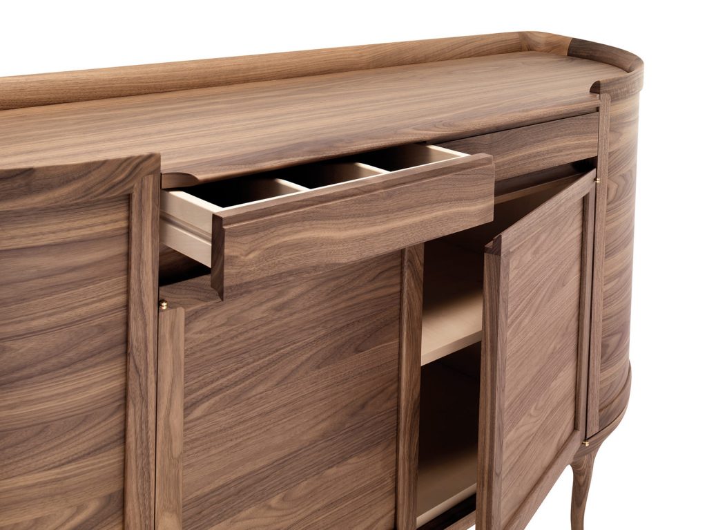 Sideboard with 4/5 doors and 2/3 drawers, 1 drawer with cutlery holder, made in solid american walnut, inside in maple.