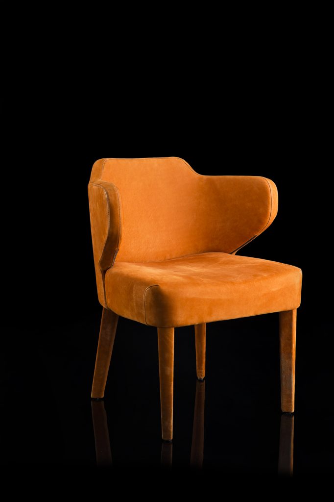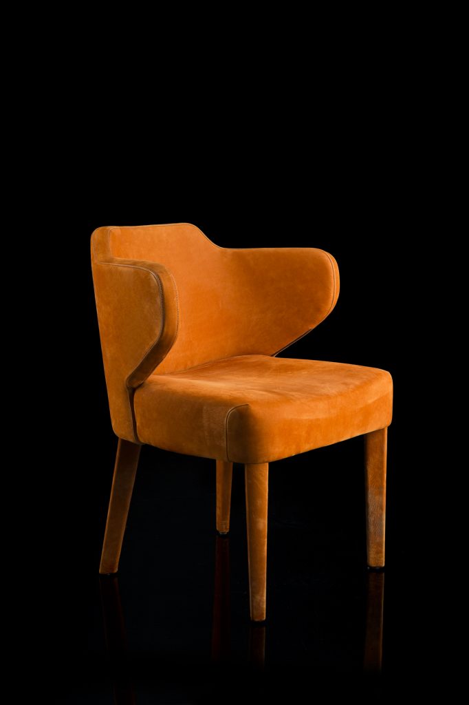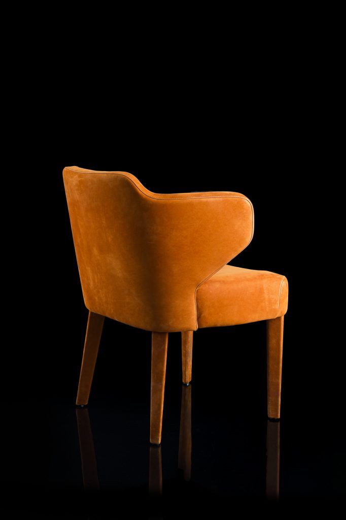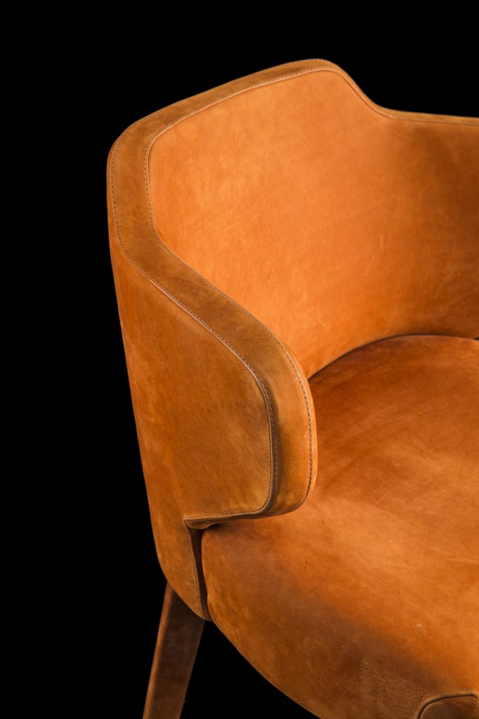 Structure wooden shell padded with polyurethane foam covered with leather from our samples catalogue. - Cover legs in wood covered with leather from our samples catalogue.