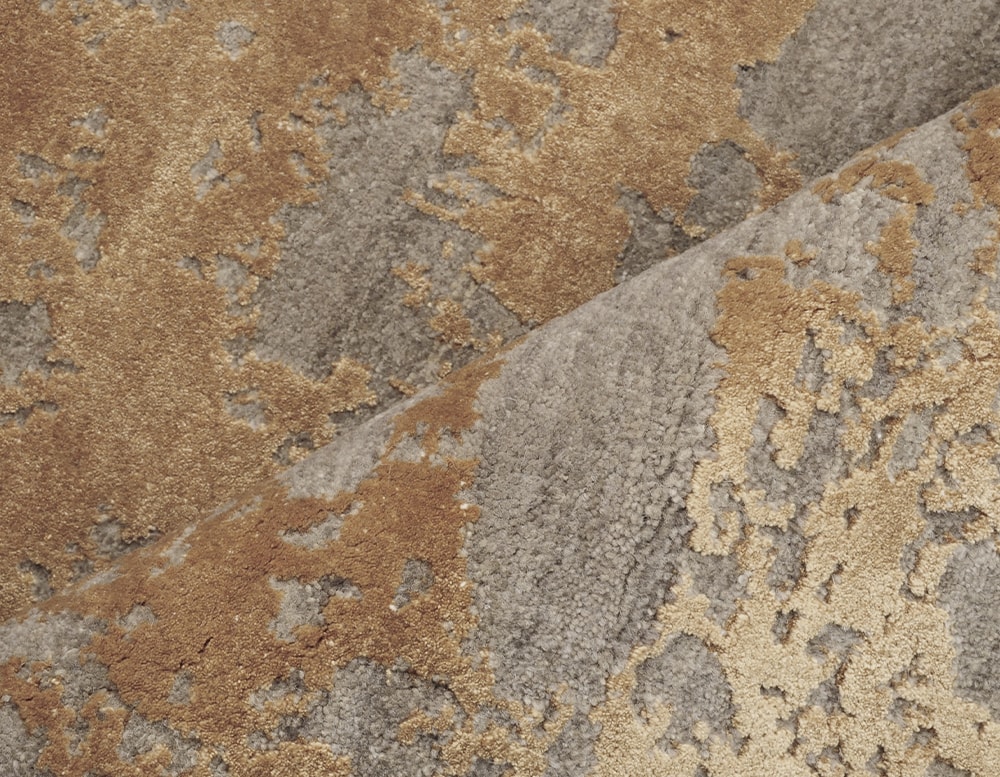 Fairy is part of the NOOR Collection by Sahrai. Contrasting colour relief in either viscose or silk on a wool background makes this rug one of a kind. The featured rug has a wool base with bronze silk relief and is by far, one of the classiest modern wool rugs. This design comes in a Handknotted finish, with a choice of four colour combinations, in either: