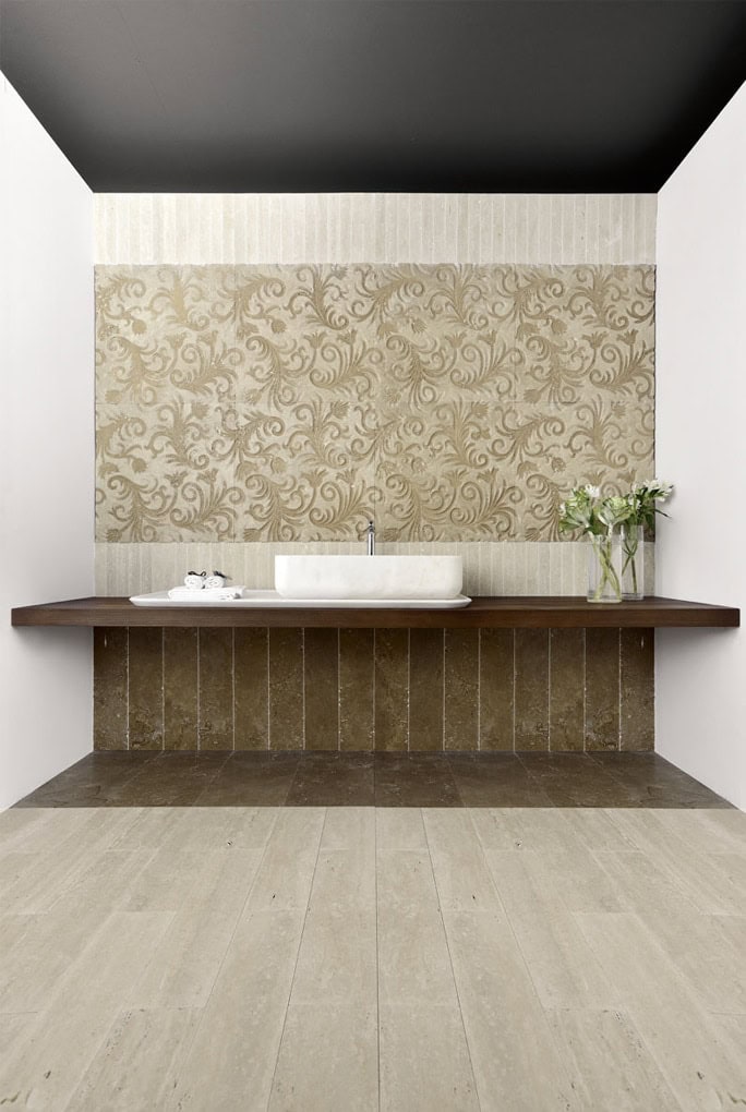Fenice is a versatile tile design that reinterprets ancient Venetian ornamentation in a modern style. The Fenice design may be produced by several methods: