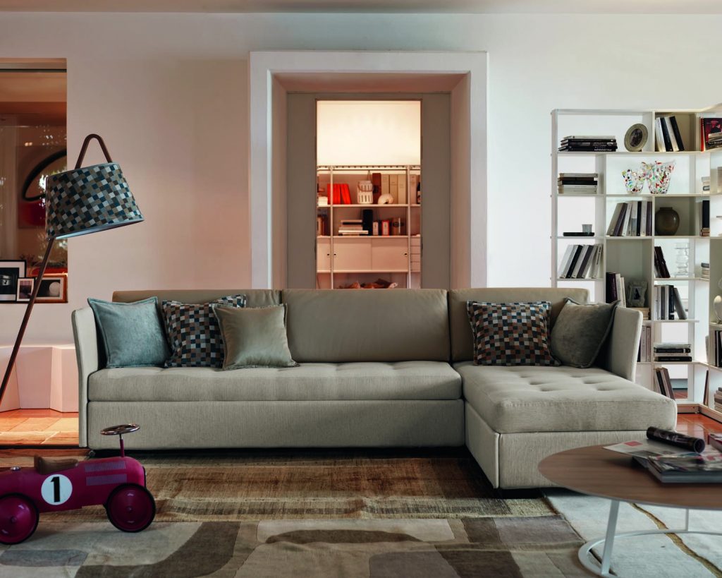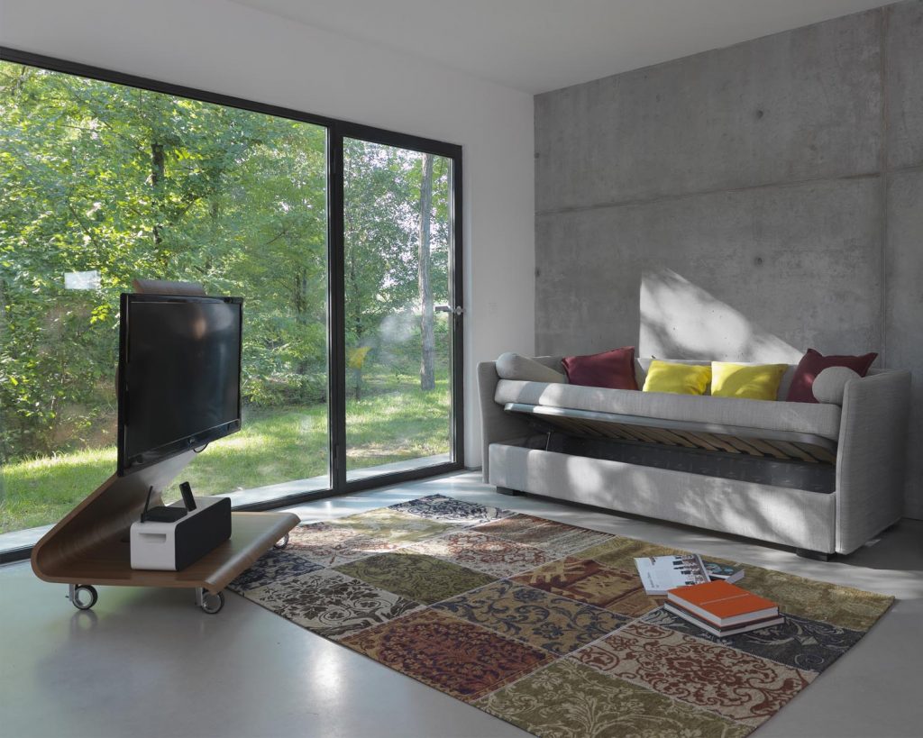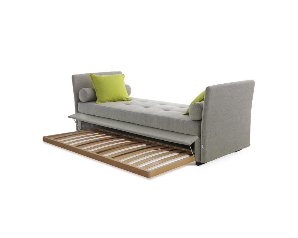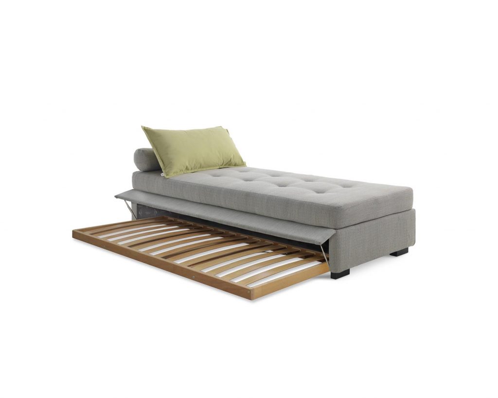 Figi is a series of trundel and padded beds, covered in leather, fabric or faux leather, with or without a storage compartment with double opening system. The cover is removable and washable, and can be manufactured in a fabric chosen from our collection. The bed frame can be dismantled for easy transport. The corner brackets supporting the slatted base can be adjusted in height in order to recess the mattress into the bed frame (only in the bed without storage compartment). The bed feet are made of solid beechwood and can have a mocha, natural, walnut or white lacquer finish. The metal framed slatted base can be replaced by an electric adjustable wooden framed slatted base (head/foot-movement). Mattress sold separately.
