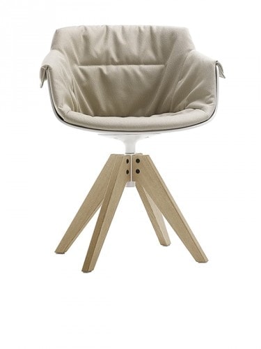 A family of seatings of great impact and comfort. Designed for the home, the office and the community areas. A wide range of bases and finishes are available. Options: with a white or black polycarbonate shell, that can be completed with the classic upholstery, or with the new "XL padding". Base options: 4-legged, sled, 4-legged steel, 4-legged LEM, 5-point-star height-adjustable on castors, 5 point-star fixed, central leg, VN 4-legged oak, 4-legged oak. Optional upholstered PAD.