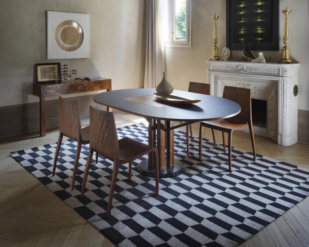 Flower is the output of an exciting collaboration with two Masters of world design, born out of a challenge: to create an extendable round table that was beautiful both closed and open. The flat surfaces slide without the use of runners, thanks to a technical solution that is also aesthetic: a movable arm that is reminiscent of a Roman crane. The table extension comes out and opens like a blossoming flower, showing that aesthetics is the natural result of good design, conceived out of a technical search for simplicity and functionality.