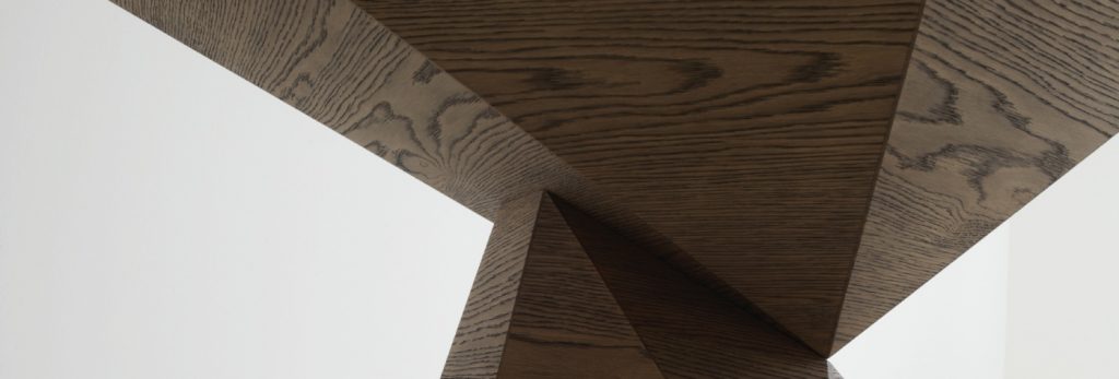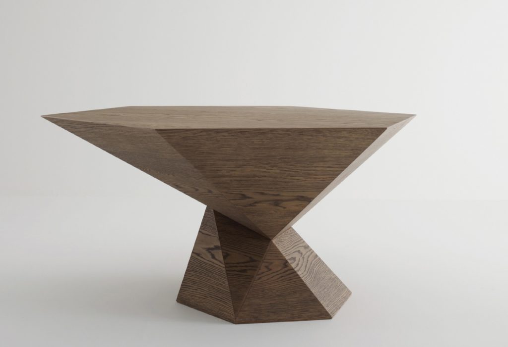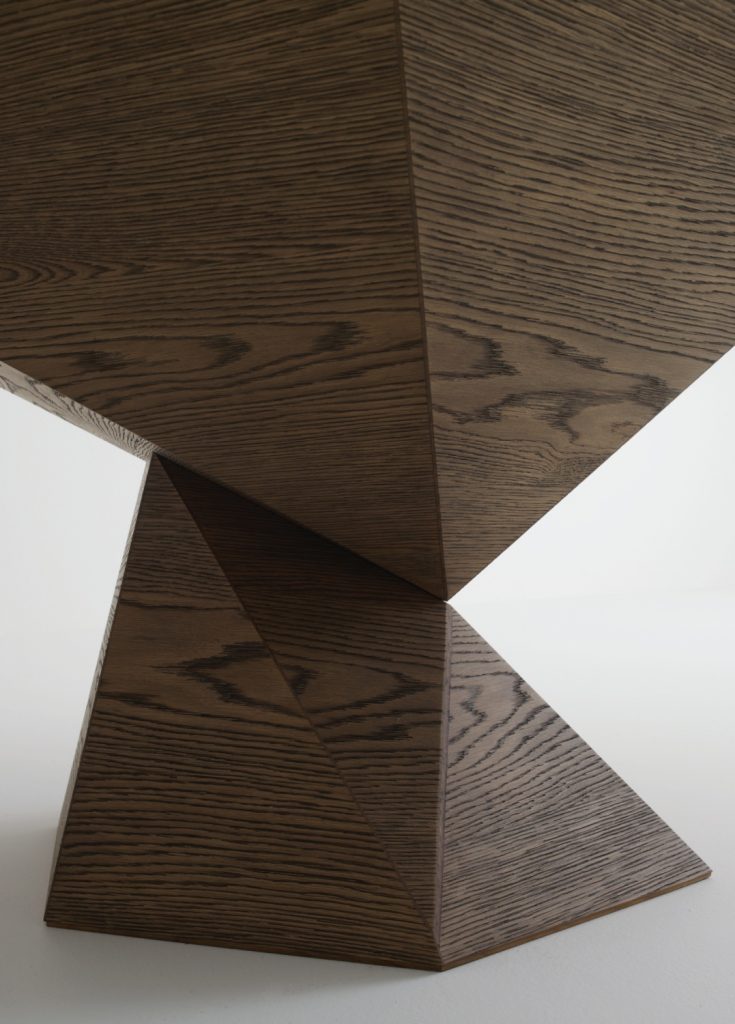 Original table with hexagonal, octagonal or decagonal top or in square version too. Made of poplar multilayer wood, shaped with facets and then covered with veneer or lacquered, mat or bright