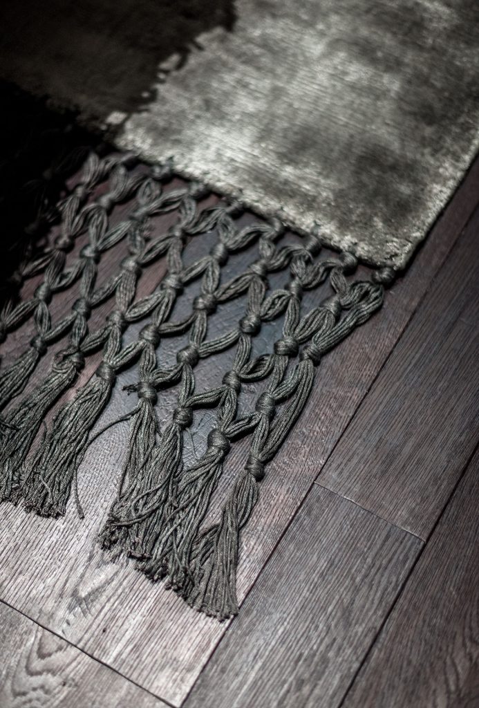 Craft rug made on wooden looms, made up of a mix of naturally occurring silks, obtained from plants, among which soy, banana tree and bamboo. For the standard maintenance of rugs, vacuum regularly with rotating brushes to remove dust and other residues. To remove stains use a suitable professional non-powder detergent, without applying it directly on the stain, but rather in small quantities on a cloth. For stains on wool rugs use special pH-neutral products, taking care to remove any residue. The area concerned should then be dried as much as possible with a clean cloth. To wash it is advisable to consult a specialist dry cleaner.