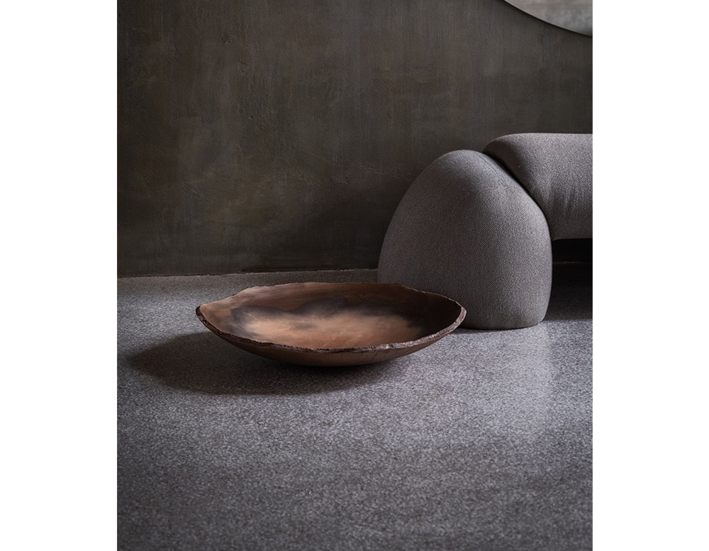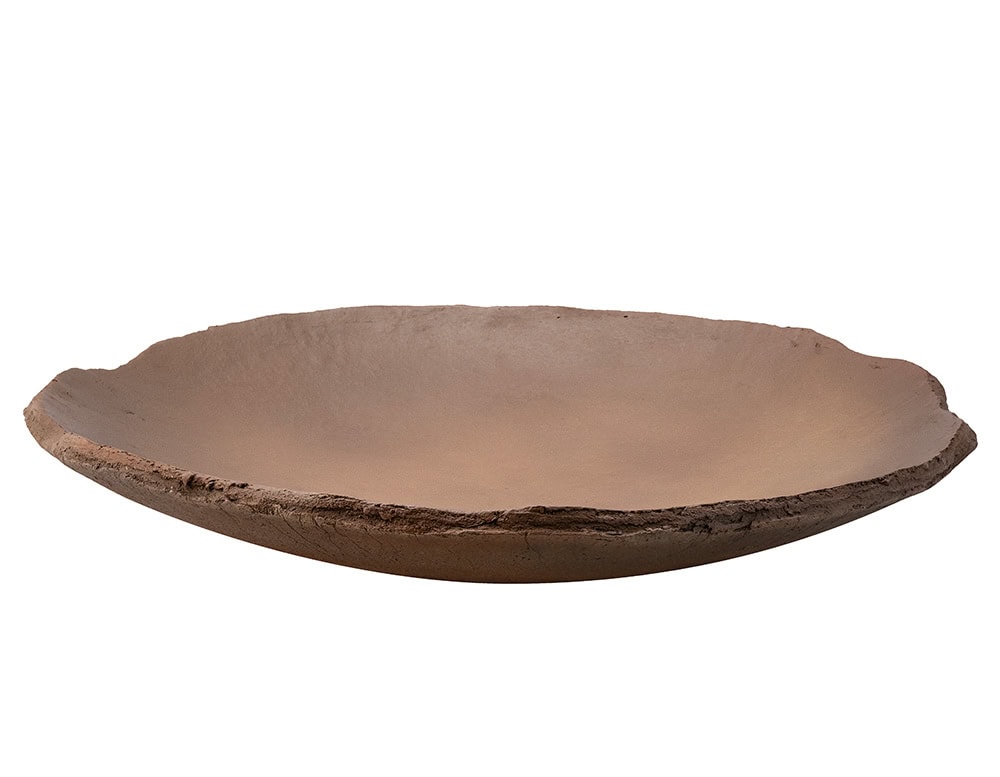 Fruteira casca natural is a ceramic bowl manufactured in Brazil at the studio Cores da Terra. The bowl is designed by Selma Calheira, founder of the studio, and produced following a modern interpretation of the traditional Japanese raku firing technique. A charred colour is achieved by baking the clay with sawdust in an oxygen reduced environment. The brown colour is produced during the cooling process after baking, when the clay is exposed to smoke from different types of wood and leaves. Fruteira casca natural testifies to the mastery of Selma Calheira as a ceramist and to the sustainable production methods used at Cores da Terra.