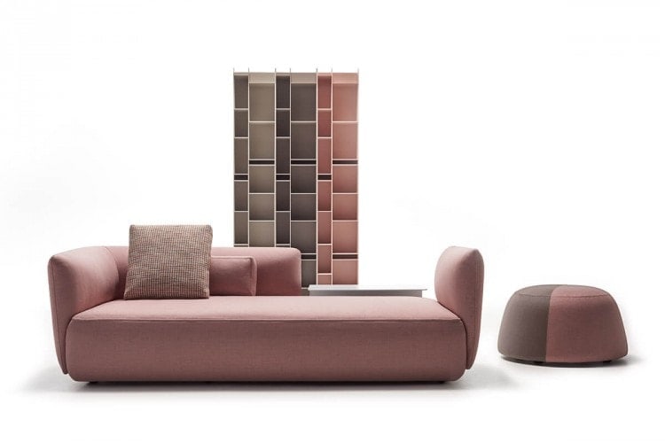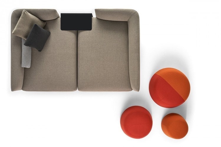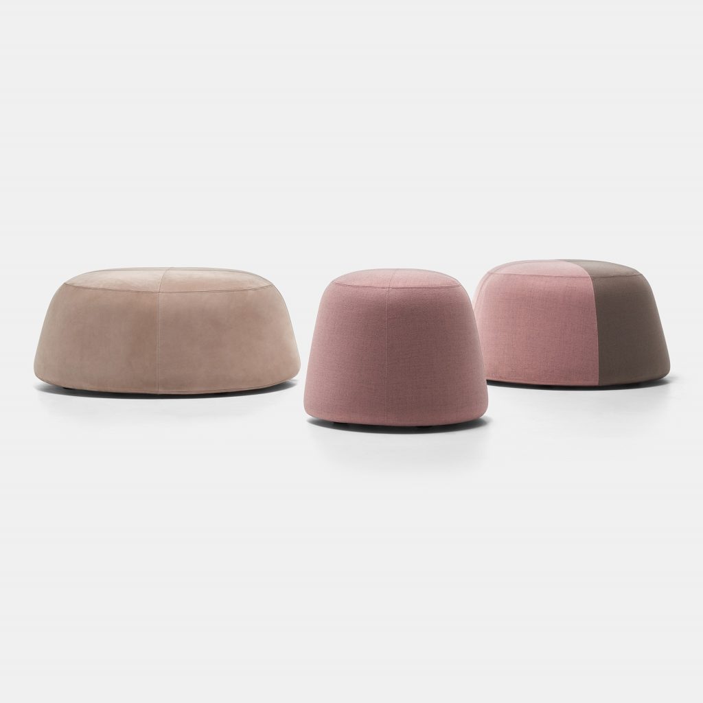 Fuji is the small casual seating collection signed by Francesco Rota whose large, generous and sweet volumes and the trapezoidal silhouette evoke the conical shape of the Japanese volcano.