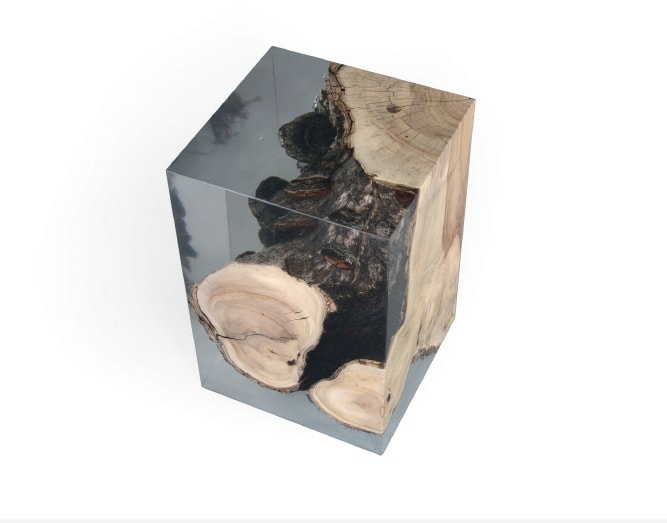 Fungi Stool is made of a WOOD block, obtained from a dead tree with its fungi texture, preserved in EXTRACLEAR RESIN resembling the winter ice that blocked the fungal activity.