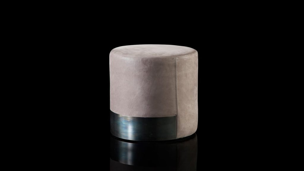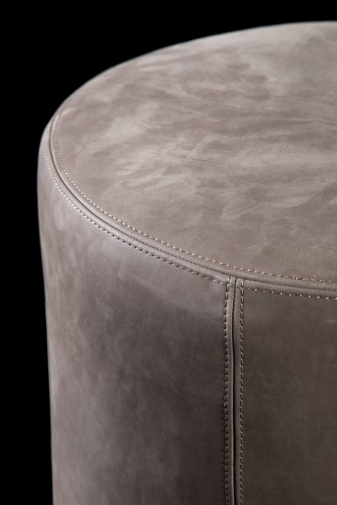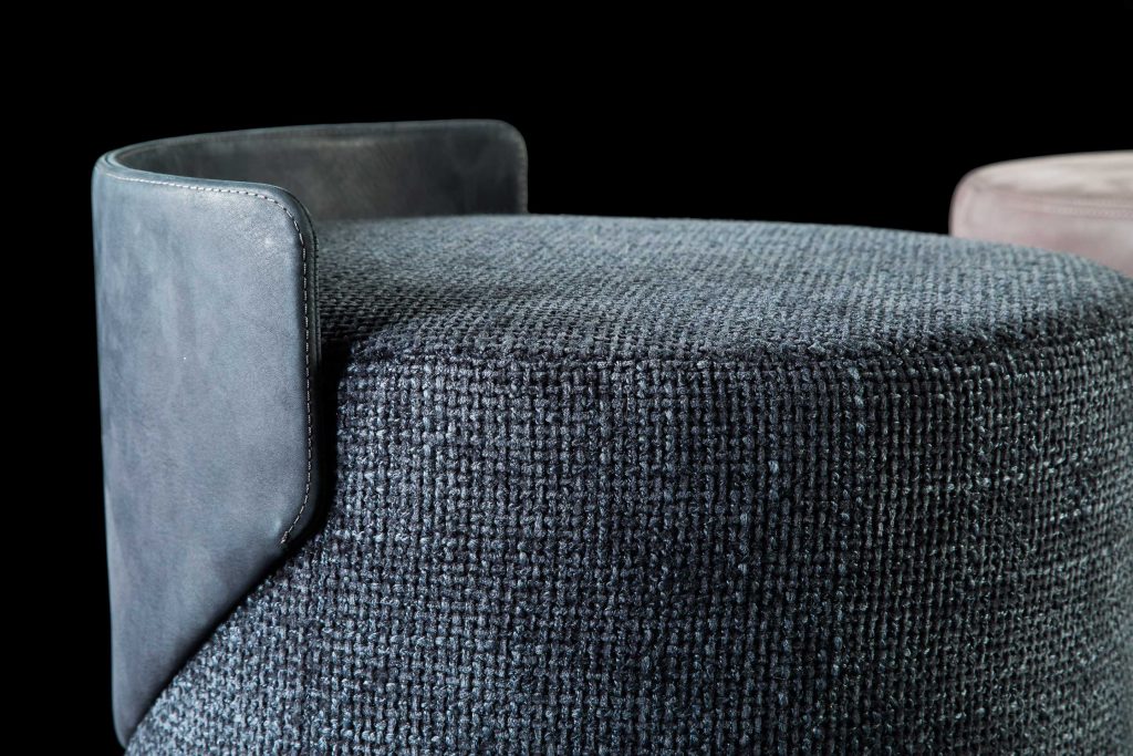 Structure solid wood with polyurethane foam in different density, covered with fabric or leather from our range. Cover not removable. - Backrest metal structure upholstered with leather form our range. - Base in black burnished steel.