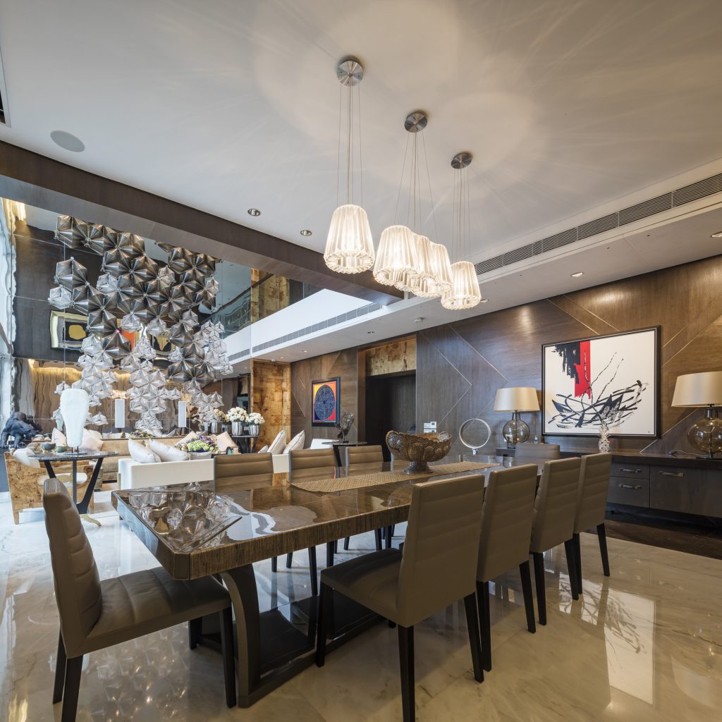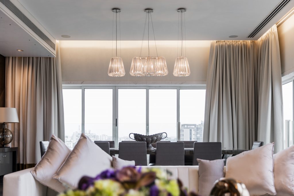 Provocatively ice clear "pleated" lamp-shades with right angle cranked legs stand in contrast with the ornamental composition of shadows that appear on the walls after you switch on the light. The classical design together with an optical projection merges into a "romantic functionalism". Hand blown Bohemian Crystal Glass