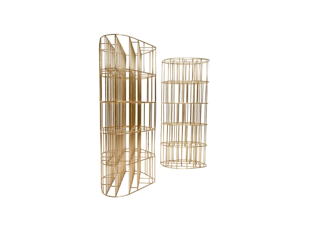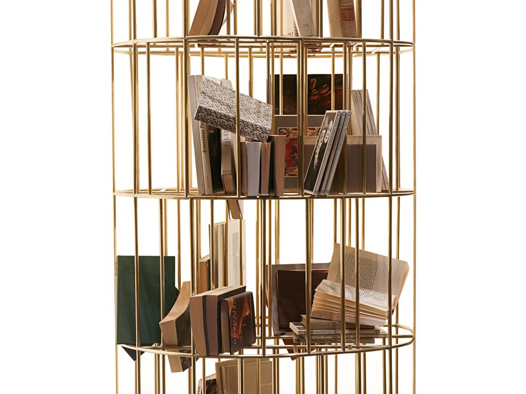 Bookcase made in natural brass rod ø10 mm., Completely welded and brushed by hand.