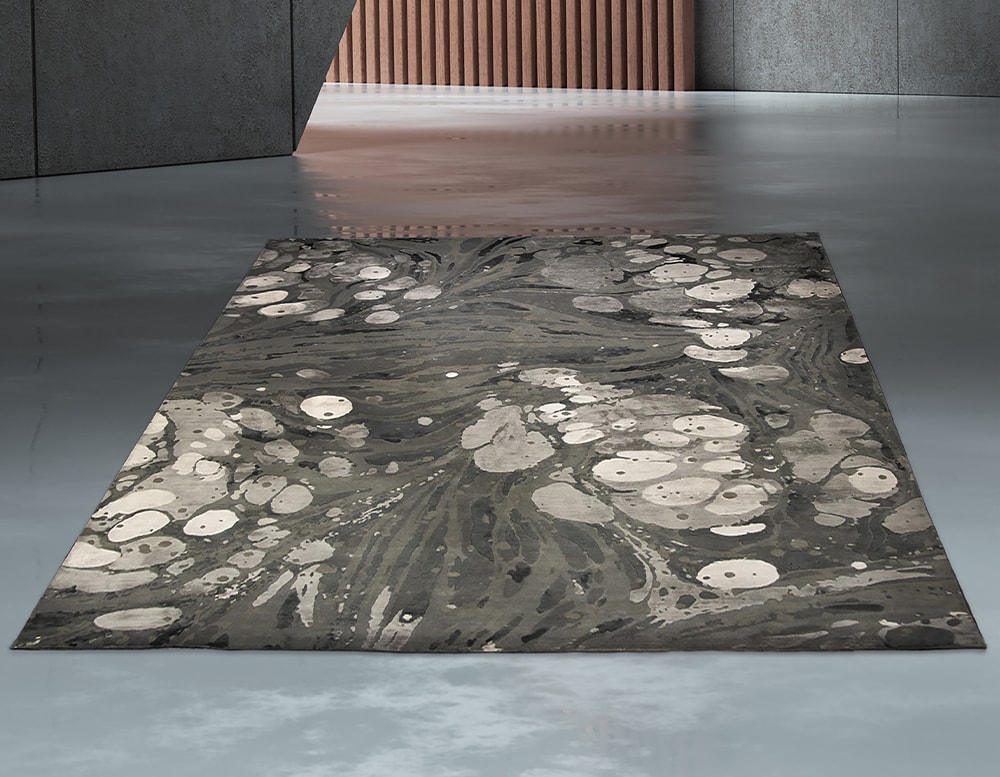 Gravity is a new rug creation part of the NOOR Collection by Sahrai - one of 4 new designs evoking phytomorphic and zoomorphic elements and their mode of propagation creating waves that pervade the universe. Stylized by the vegetable kingdom of which it becomes a symbol, a material trace, the phytomorphic line - as well as the zoomorphic equivalent - expresses the substantial continuity of the points that compose it.