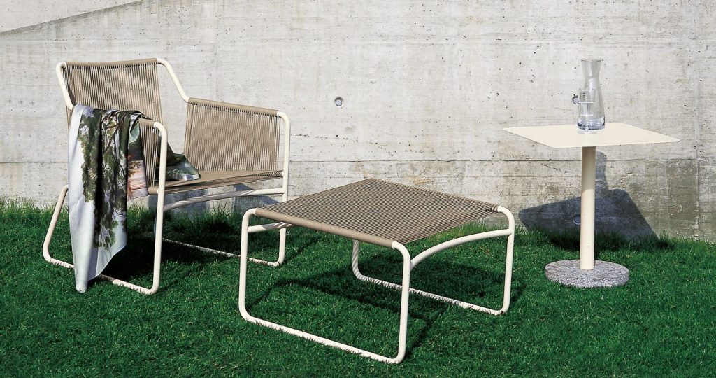 The HARP chair is a celebration of a craft manufacturing: the powder coated stainless steel structure is indeed welded by hand and the cords have been woven in a double polyester or acrylic twisted thread with a cotton finishing. The different finishing and colours satisfy any needs and harmoniously blend in with every furniture and in every context. The HARP stool is adaptable and can be used as complementary item for the lounge chair or, with an optional cushion, as a 'jolly' seat. - Length 63cm - 24"3/4