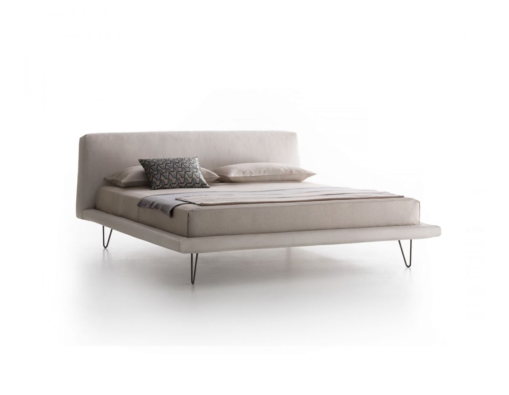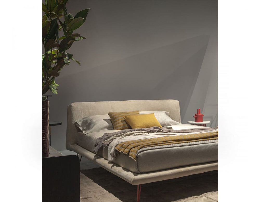 Already at a first glance, the feel emanating from the Hayden bed is one of utmost softness, an interaction of different volumes featuring a stylish juxtaposition resulting from the soft, voluminous headboard and the thin bedframe, almost suspended on its slender metal contemporary design feet. The final touch to the Hayden bed is added by a selection of fabrics or leather upholstery to lend ones favorite bed its true, deeply felt personality.