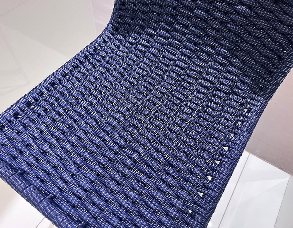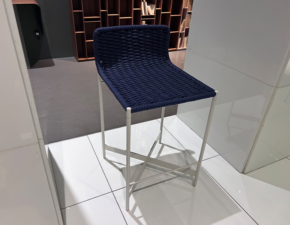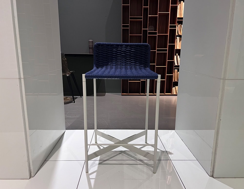 Outdoor stool with frame in Avorio stainless steel, upholstered in handwoven T0607 rope cord.
