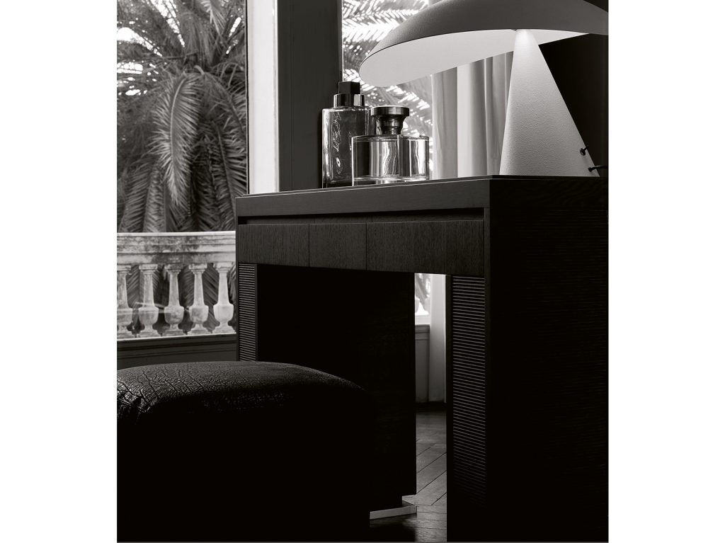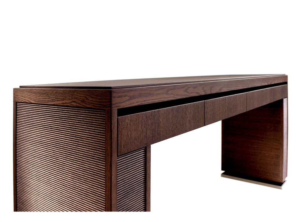 Console with 3 or 4 drawers, made in solid oak and veneered plywood, base-frame in satin stainless steel. Top in wood or marble.