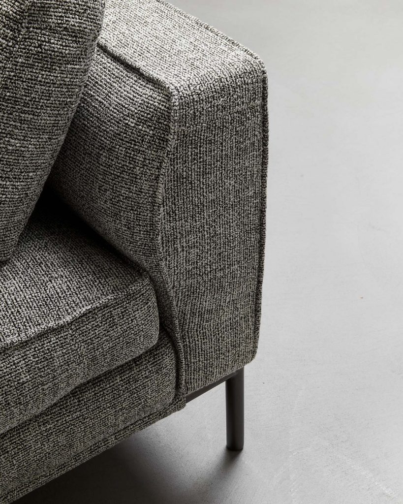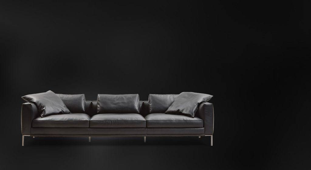 Even in the wider compositions the sofa Icon stands out for its light look, thanks to the raised seat and the details visible on the metal base and aluminium feet, available with a glossy black nickel or matt burnished finish.