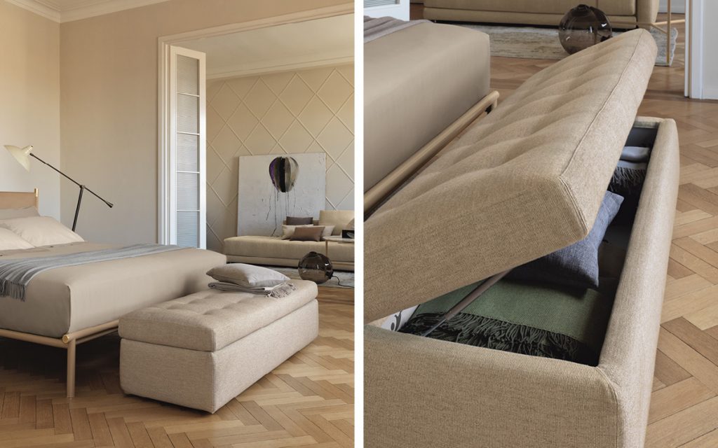 The bench Iko, a smart comfortable piece of furniture, is the perfect accessory to position at the foot of the bed.