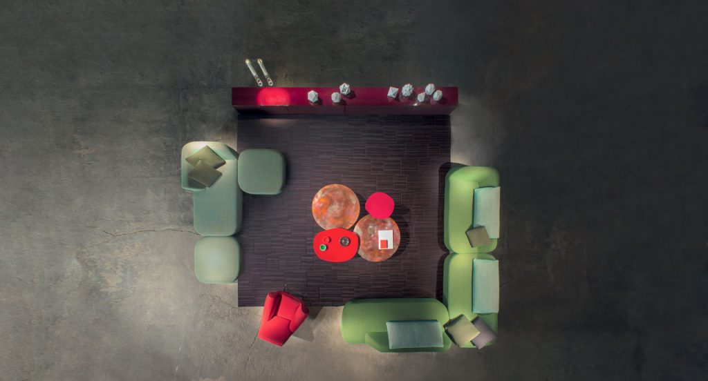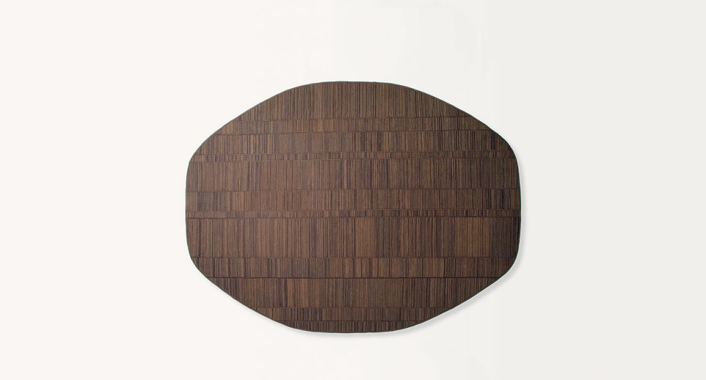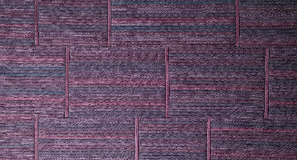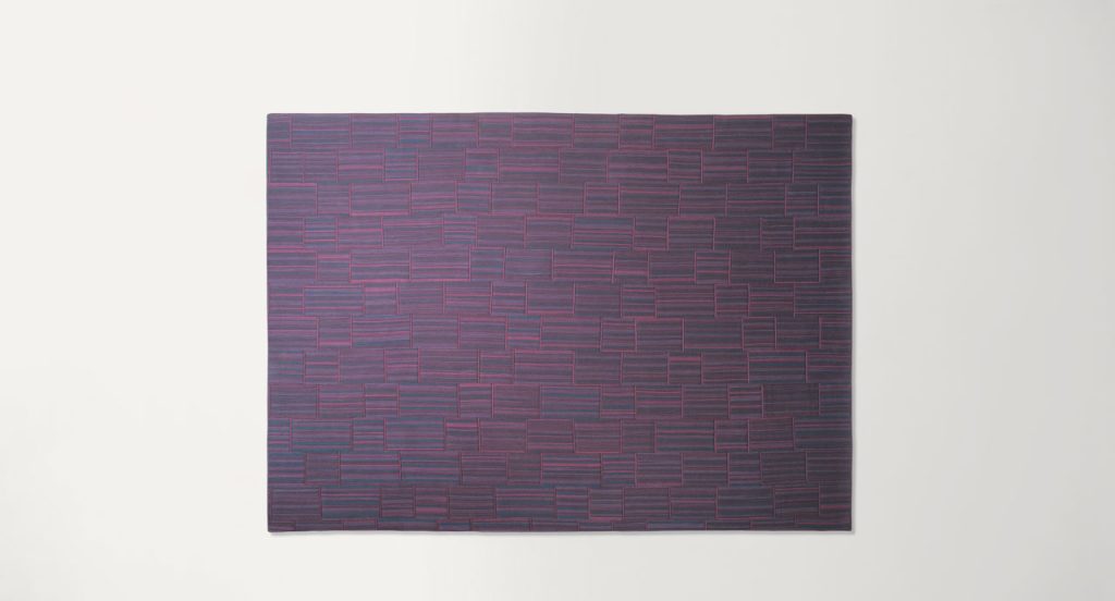 This modular rug is created by joining stripes sawn lengthwise. Each stripe is composed of wool cords in different mélange colours, which are sewn together lengthwise. The number of stripes varies according to the dimension of the rug. The irregularly shaped version of Incroci is available in two variants: one featuring the same pattern of the rectangular and square versions, one with parallel stripes of different lenghts. The border of the rug is finished with a wool cord in the predominant colour of the rug.