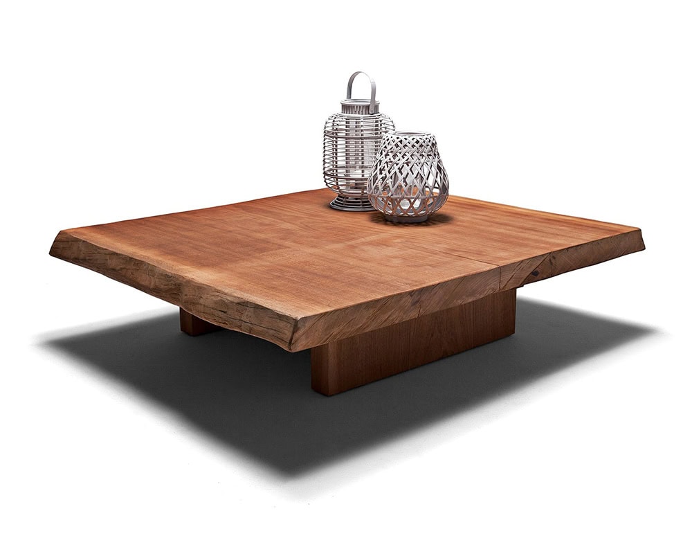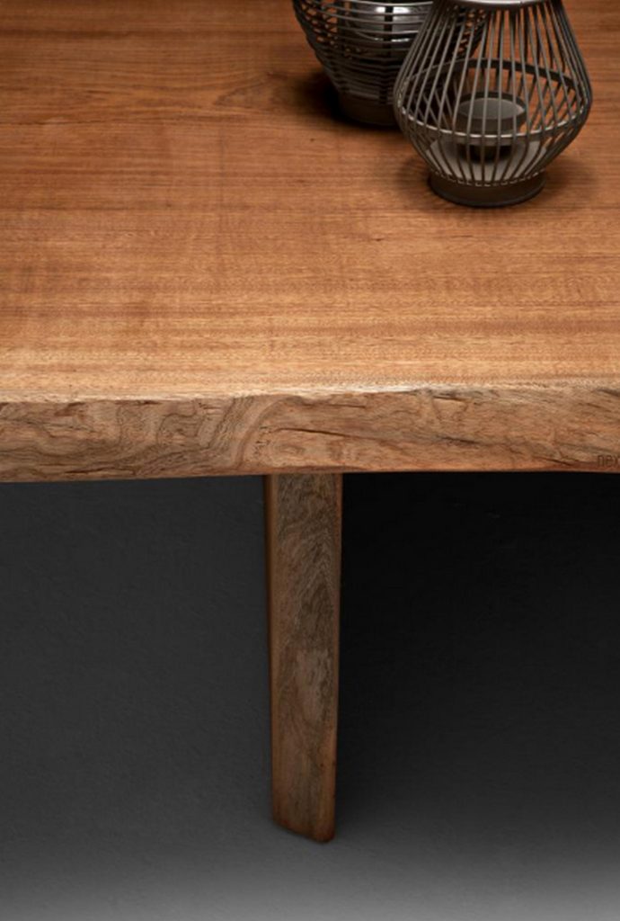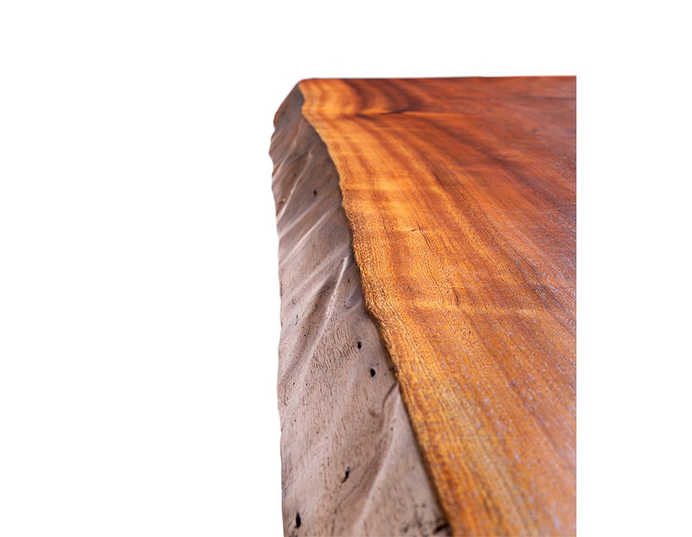 The hands of the craftsman shape the product of nature to create a unique piece. An indoor/outdoor table handcrafted from solid sapele mahogany, with a single slab obtained from a section of the trunk. Produced on request, subject to availability.