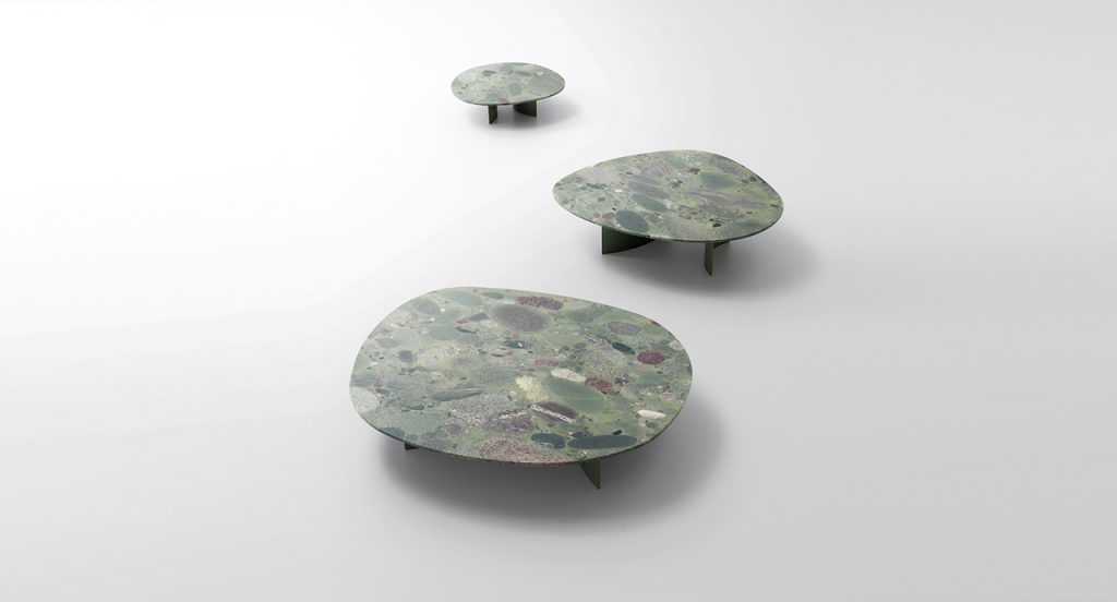 The tops of the Isole side tables are available in two versions: slightly rounded, in Pietra di Comiso, or completely flat, in marble. The first version represents continuity and standard availability, the second originates from the desire of recovering materials that, on their turn, inspire and lead design towards different interpretations of the same object. Isole is therefore a collection meant to change with time.