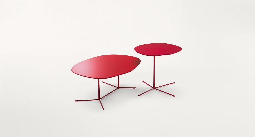 Series of side tables. - Top: fibreboard finished Mano Lucida or veneered and finished Mano Opaca. - Base: varnished steel. Plastic spacers. - Note: The border and the lower surface of the top and the steel base are varnished in matt or gloss colours matching the top. - Awards: The series Ivy has been selected for the ADI Design Index 2014 and won the GOOD DESIGN AWARD 2013 in the interior furniture design category.