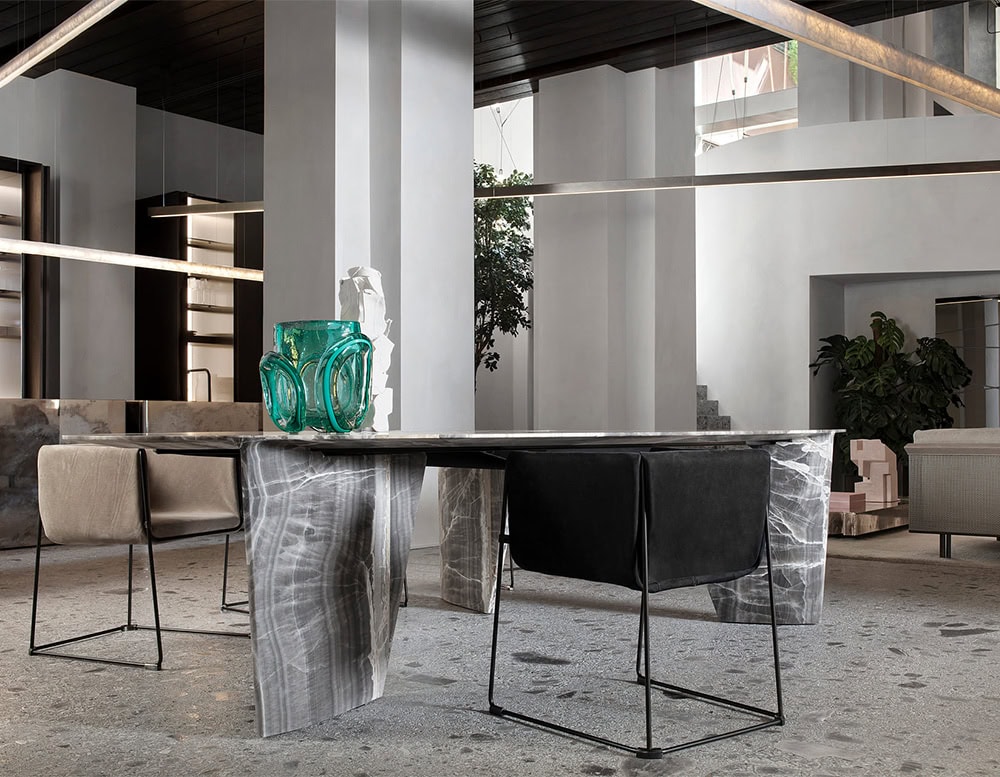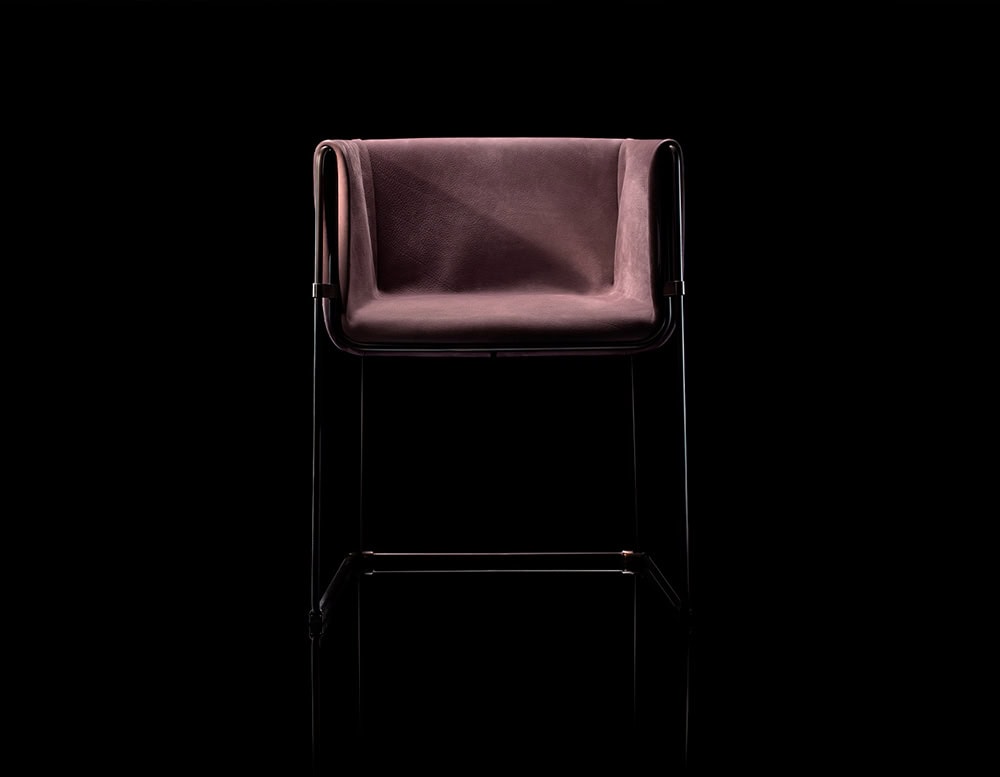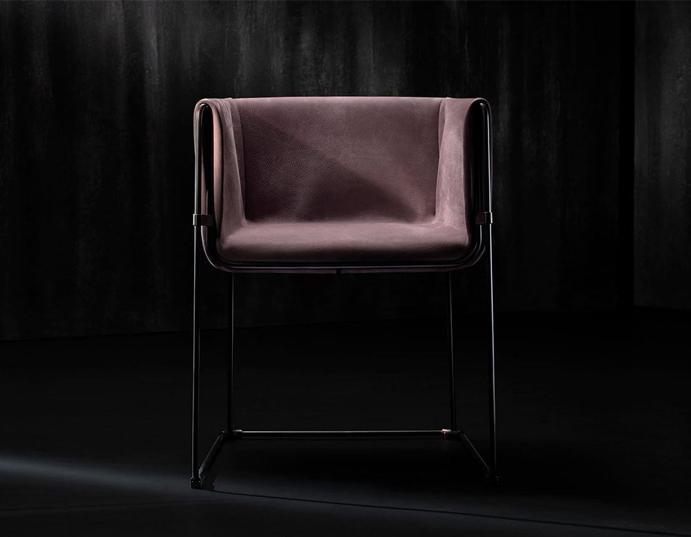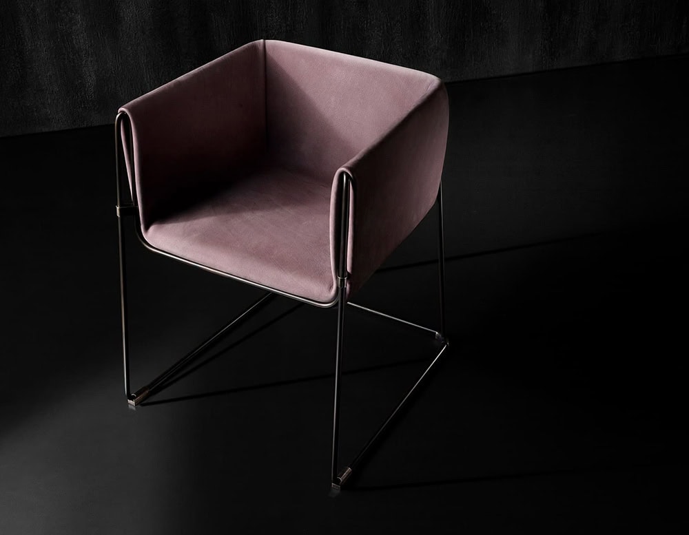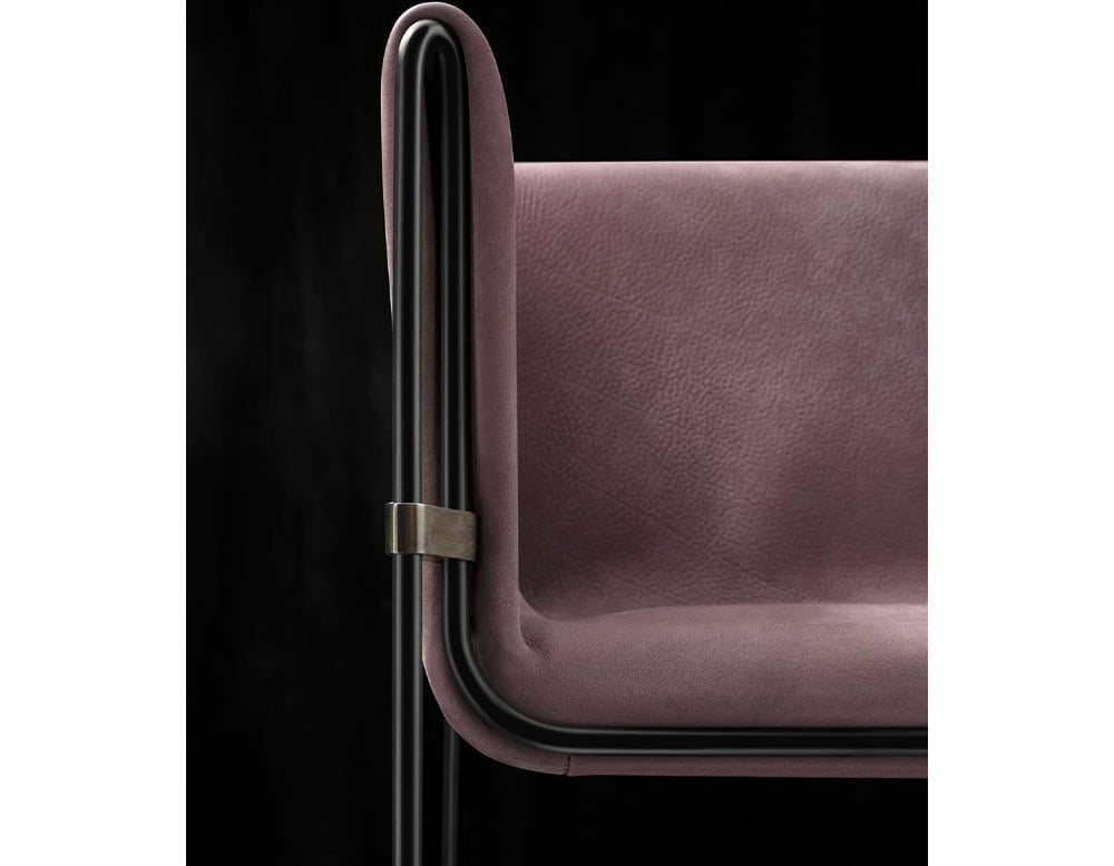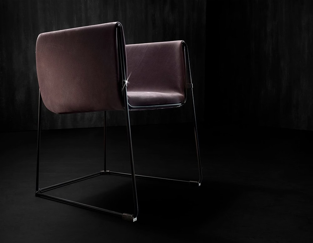 The armchair, Jill, satisfies a highly contemporary aesthetic taste. Casual and elegant, it expresses a refined balance, combining the slender, black-burnished steel frame with the soft, sensual materiality of the comfortable leather seat.
