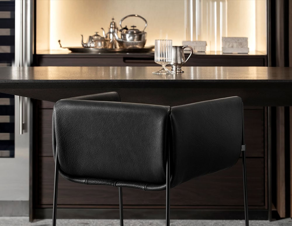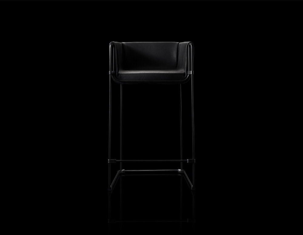 The armchair, Jill, satisfies a highly contemporary aesthetic taste. Casual and elegant, it expresses a refined balance, combining the slender, black-burnished steel frame with the soft, sensual materiality of the comfortable leather seat.