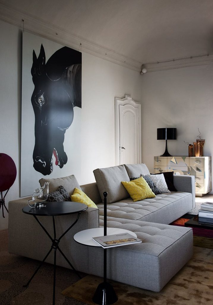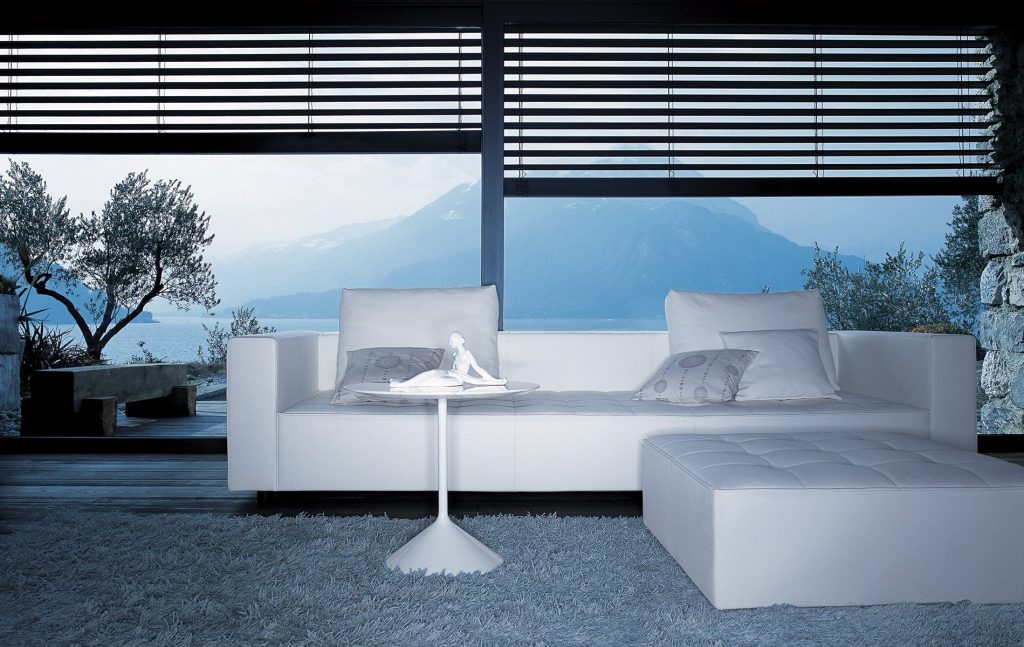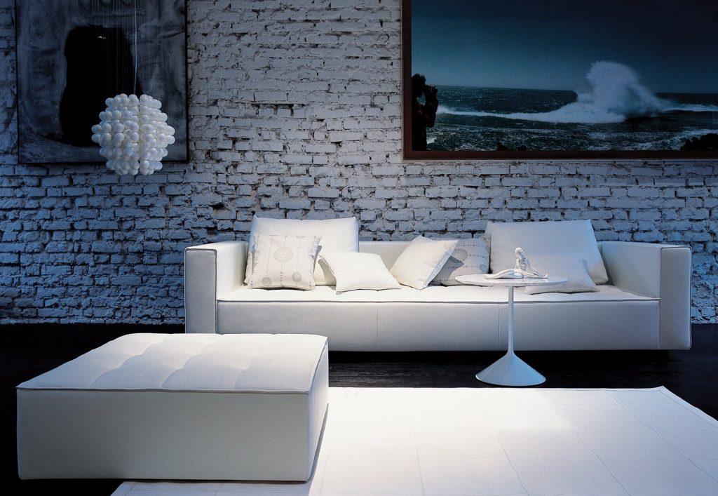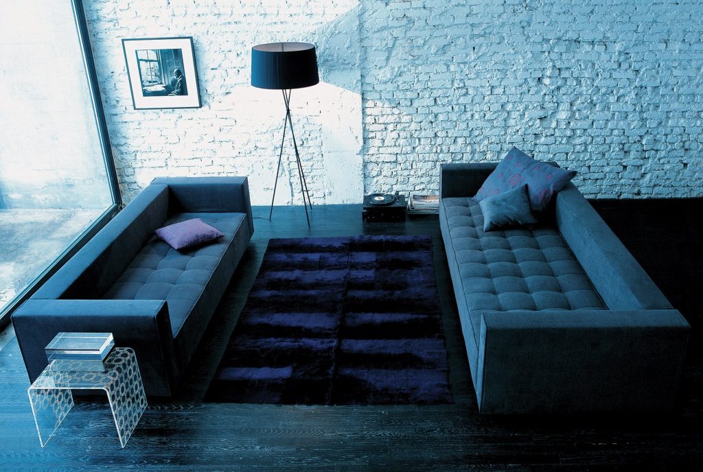 Steel frame. Elastic strips suspension. Upholstery in polyurethane/heat-bound polyester fibre. Removable fabric or leather cover with quilted seat cushion.