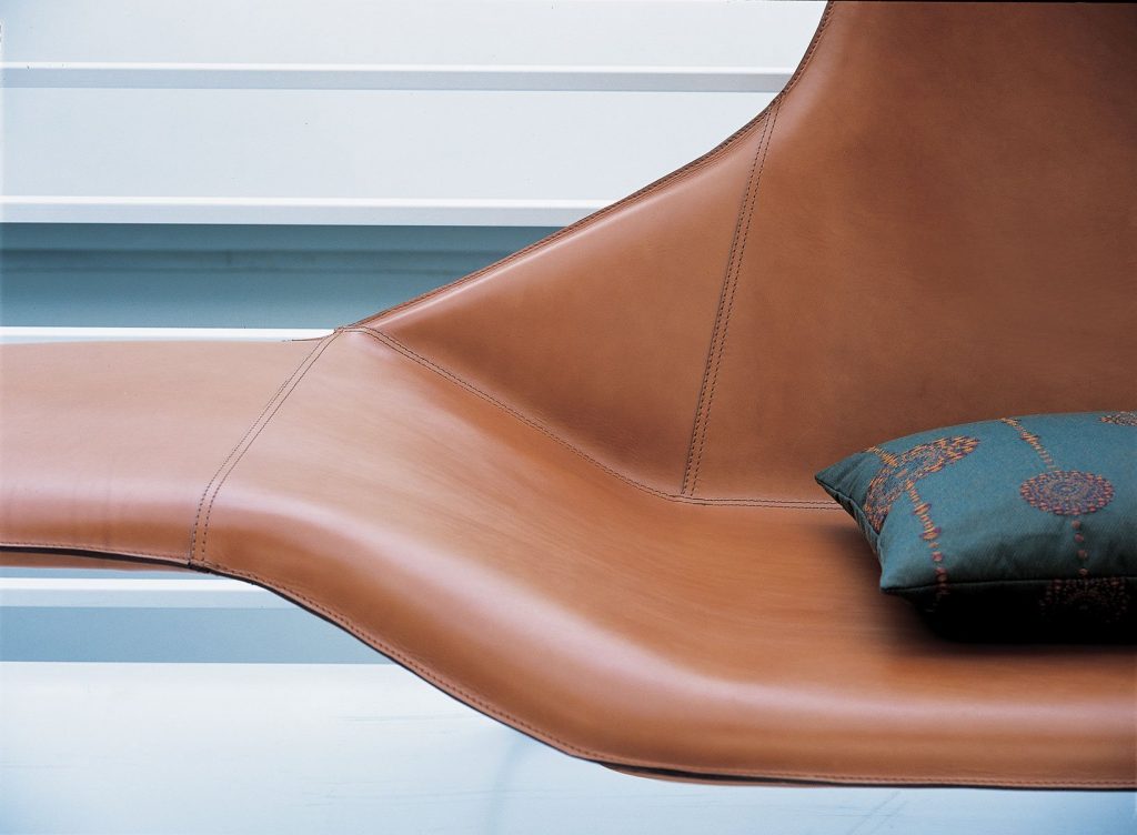 Varnished steel frame, colour graphite. Self-extinguishing polyurethane foam upholstery with elastic strips suspension. Removable cover in fabric or leather, or non-removable in cowhide.
