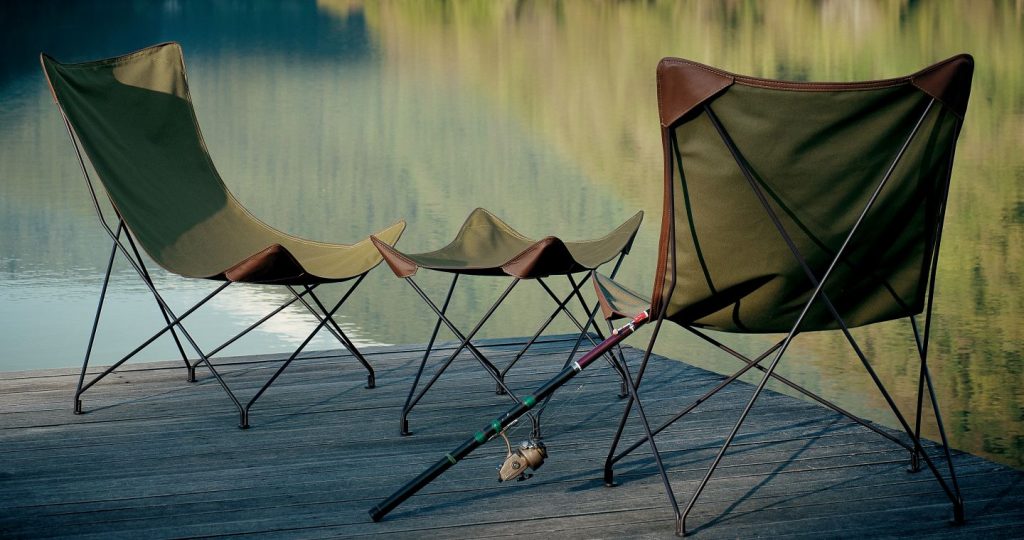 Essential and timeless design for LAWRENCE: a cotton impermeable canvas with leather inserts, clothes the vertexes of four structural triangles in metal wire.