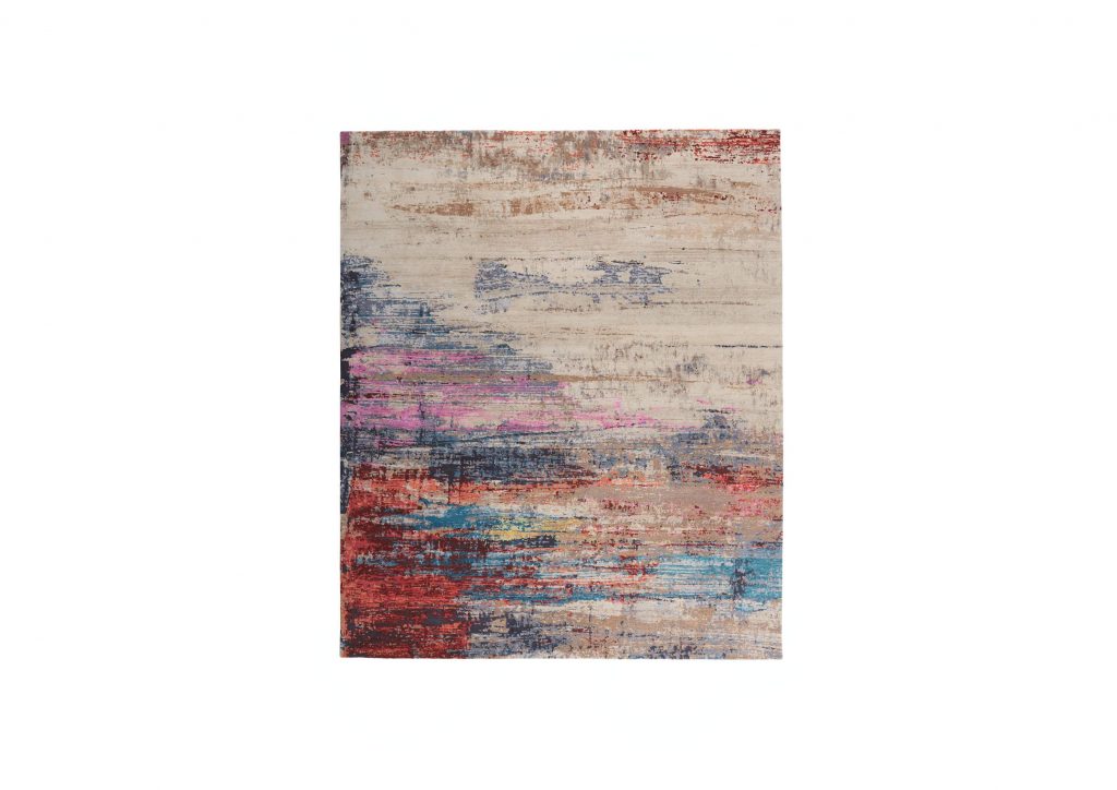 Inspired by the landscapes and colors of Africa, and hand-knotted in certified Nepalese workshops, the collection Legends of Carpets" translates abstract painting into timeless, woven works of art. Wool from the Tibetan highlands, fine Chinese silk and nettle yarn all possess exceptional qualities which consequently characterize the products. In Nepal, our certified partner workshops have often been in the hands of the same family for generations. There, carpets are hand-crafted using traditional Tibetan knotting methods under sustainable and socially responsible conditions. Due to the heterogeneous nature of fibers and threads, to their diverse colors and hues, and to the personal interpretation of craftsmen, every rug ends up being a unique masterpiece. These objects are living proof that true values are wisely handed down from generation to generation.