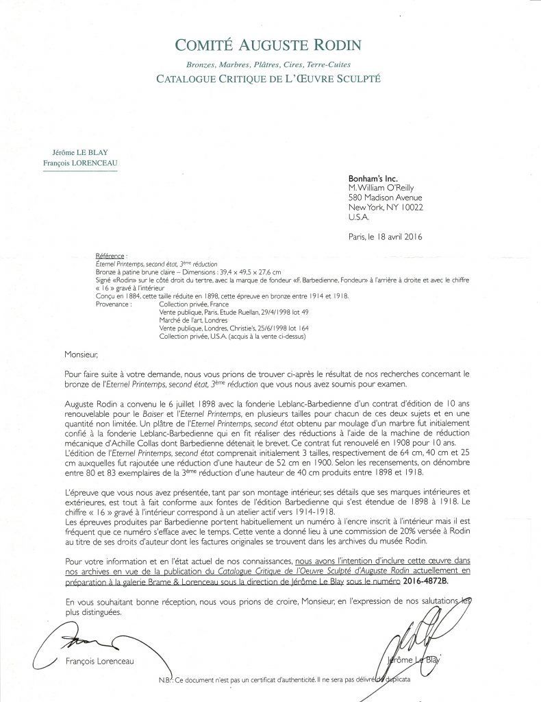 Bronze with dark green patina. Signed Rodin (on the lower right of the base), with the foundry mark "F. Baberdienne Fondeur" (on the back of the base and with workshop stap "16" to the interior.