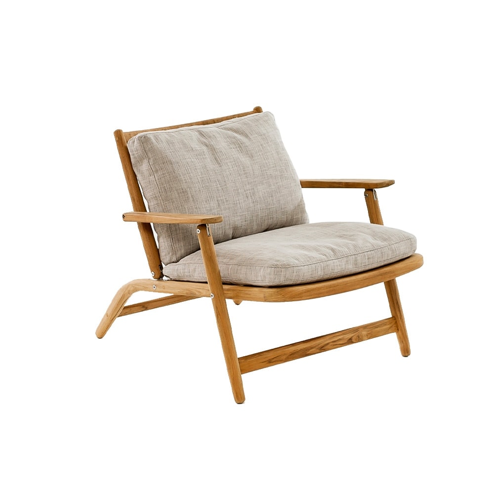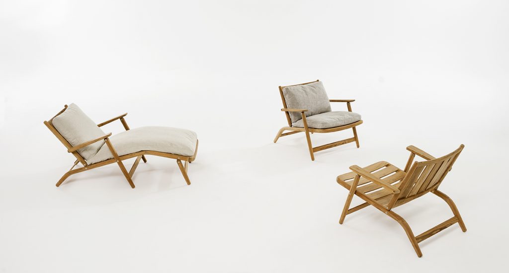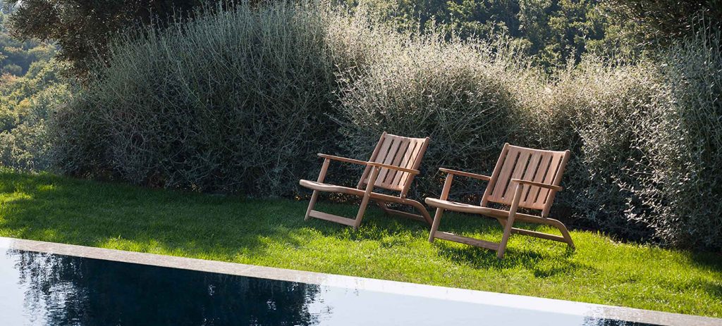 folding lounge chair for outdoor use on which indulging in moments of leisure and rest, welcomed by soft and comfortable cushions which constitute an undisputed plus. An elegant and stylish design with a timeless allure enhanced by teak in all its warmth and richness.