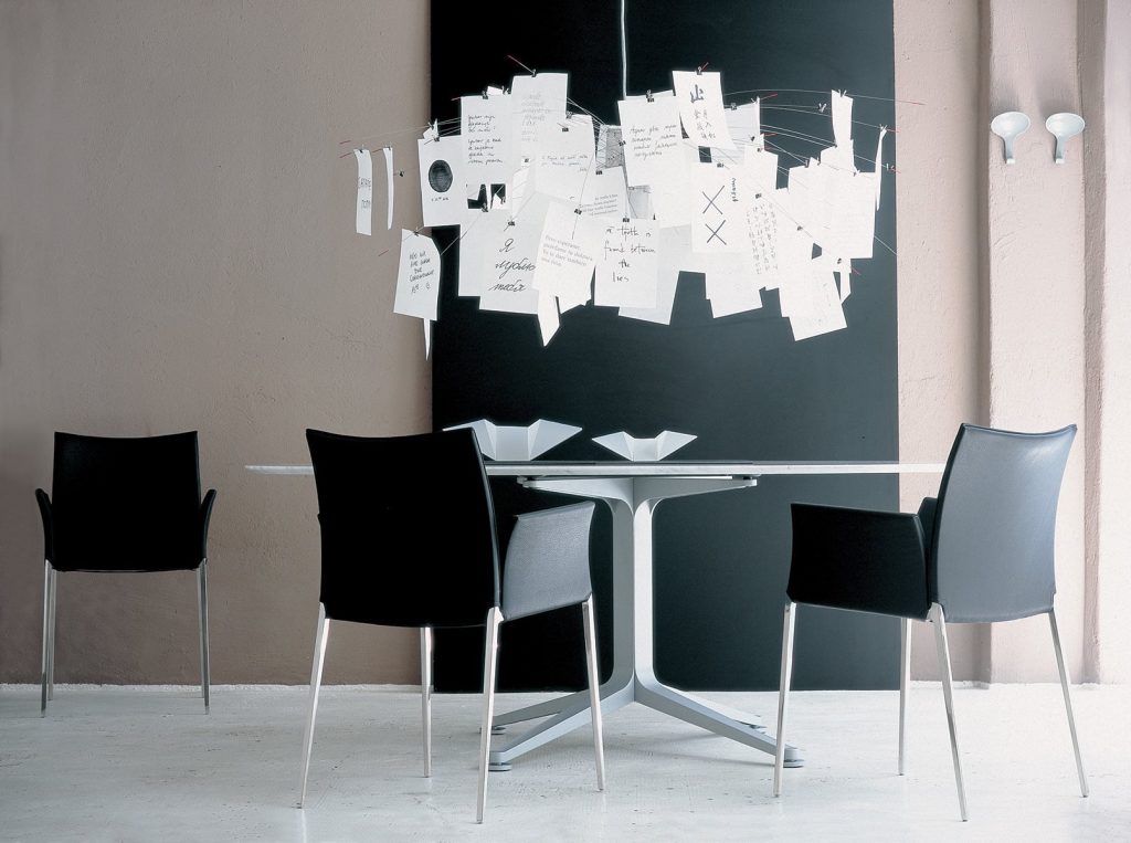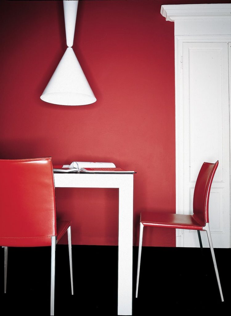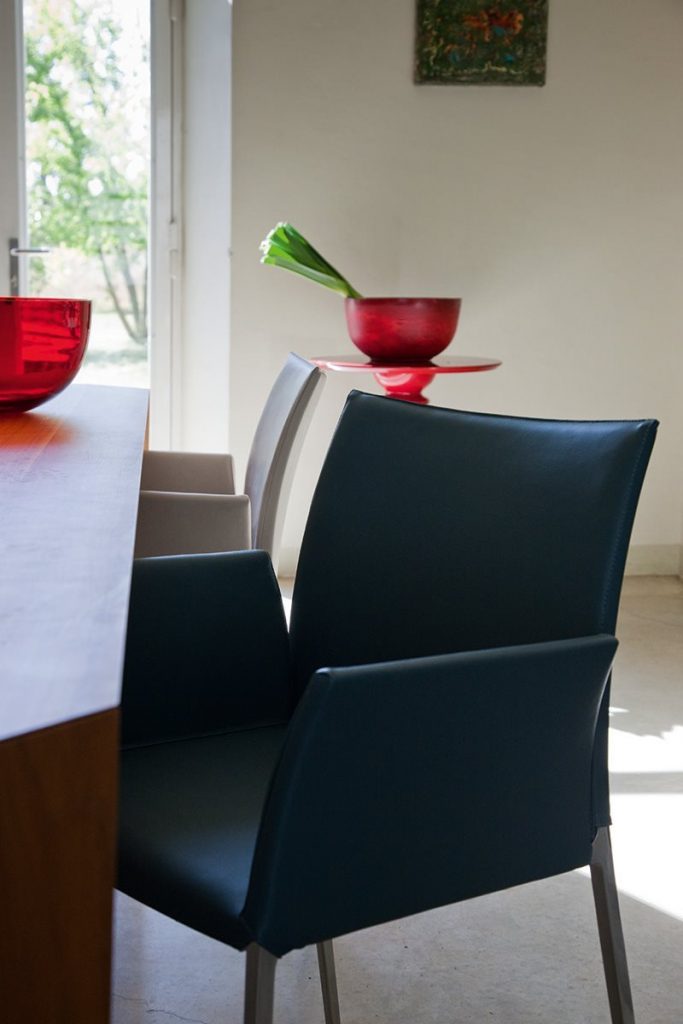 Aluminum alloy frame, polished or painted black, graphite or white. Seat, back and armrests upholstered in polyurethane. Removable cover in fabric or leather or non-removable in cowhide. Upon request two loose covers to be put on without fixing can be supplied: in 100% white cotton, available either short covering seat and backrest or long covering legs too.