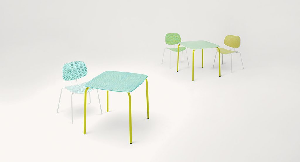 Stackable bistrot table. The Lido series also includes a chair and a lounge chair available in the same finishings. - Structure: stainless steel AISI 304 gloss-varnished in bianco colour; adjustable feet. - Top: Diade, a new Paola Lenti's signature material suitable for the outdoor. - Notes: Tables are stackable up to four pieces. - This product can be used also in interior environments. - We advise to use a Winter Set protection cover.